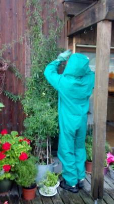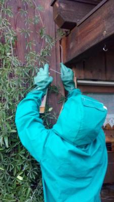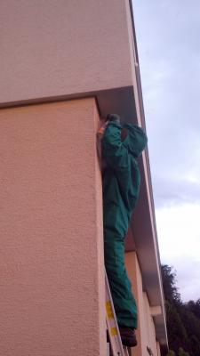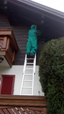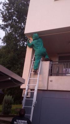 Nachdem diese Einsatzstelle erledigt war, ging es weiter zu einem Haus in der Bergstraße. Dort galt es ein Wespennest im Bereich des Balkons zu entfernen.