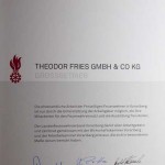 Eine Delegation der Ortsfeuerwehr Zwischenwasser machte sich gemeinsam mit Vertretern der Firma FRIES und der Betriebsfeuerwehr FRIES, auf nach Wien um diese hohe Auszeichnung entgegen zu nehmen. Die Ortsfeuerwehr Zwischenwasser möchte hiermit der Firma FRIES gratulieren und einen Dank für die gute Zusammenarbeit aussprechen!