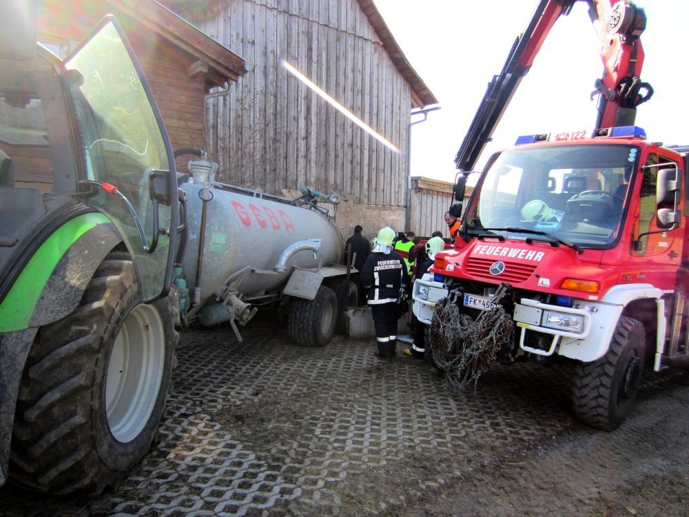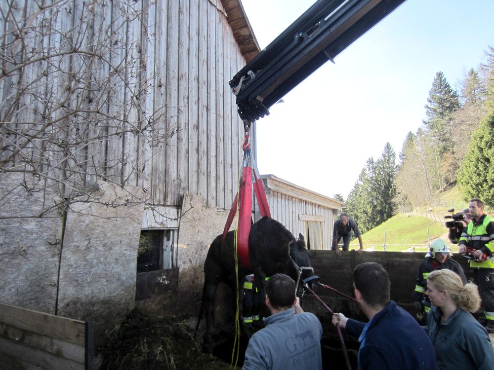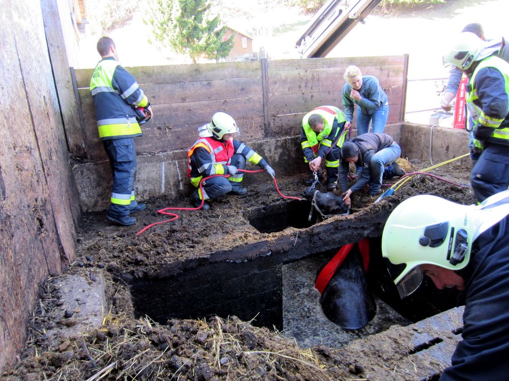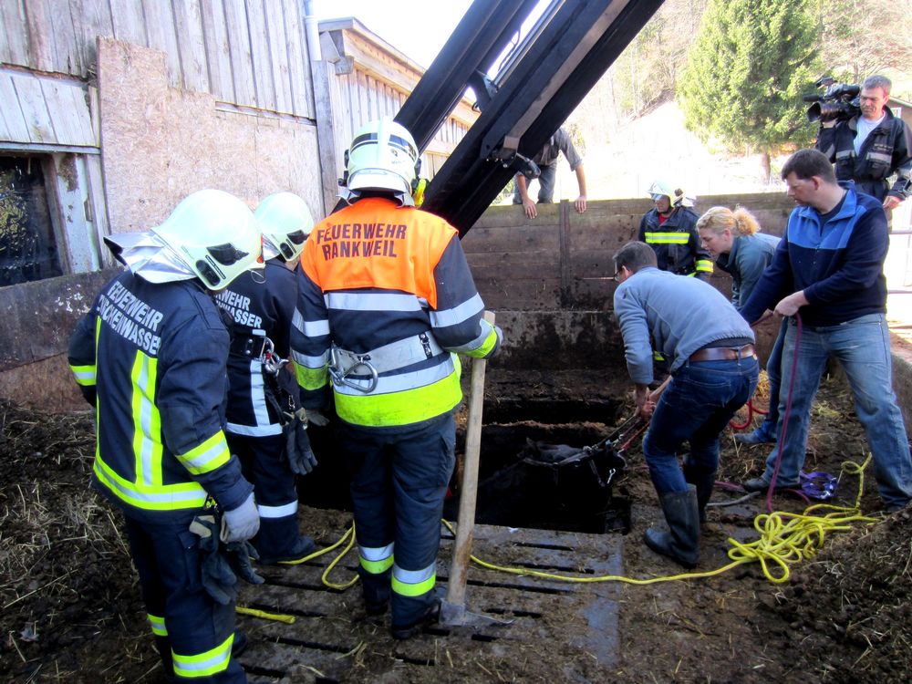 Situation: Am Freitag dem 21. März, stürzte nahe des Gasthofs Peterhof ein Pferd in eine Jauchegrube. Zur Bergung des Tieres wurde die Ortsfeuerwehr Zwischenwasser per Pager alarmiert. Die Kameraden des Zugs Batschuns waren schnell Vorort und leiteten sofort weitere Maßnahmen in die Wege. Mit Hilfe eines Traktors mir Jauchefass wurde die Jauche abgepumpt. Zudem wurde das SRF mit Kranaufbau der Feuerwehr Rankweil nachalarmiert. Nachdem der Großteil der Jauche abgepumpt war, konnten die Traggurte in Position gebracht werden. Mit Hilfe des SRF wurde das Pferd aus der Jauchegrube gehoben und konnte anschließend gesäubert werden.