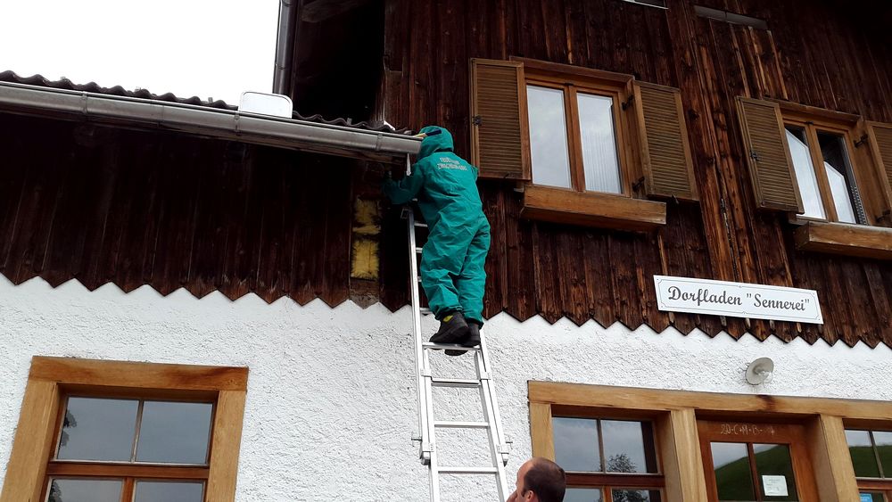 Situation: Das Insektenteam wurde dieses Mal nach Dafins in den Lindenbodenweg 2 zur Alten Sennerei gerufen. Dort musste ein Wespennest unter einer Hausfassade entfernt werden. Die Kameraden konnten auch diesen Einsatz professionell und erfolgreich abwickeln.