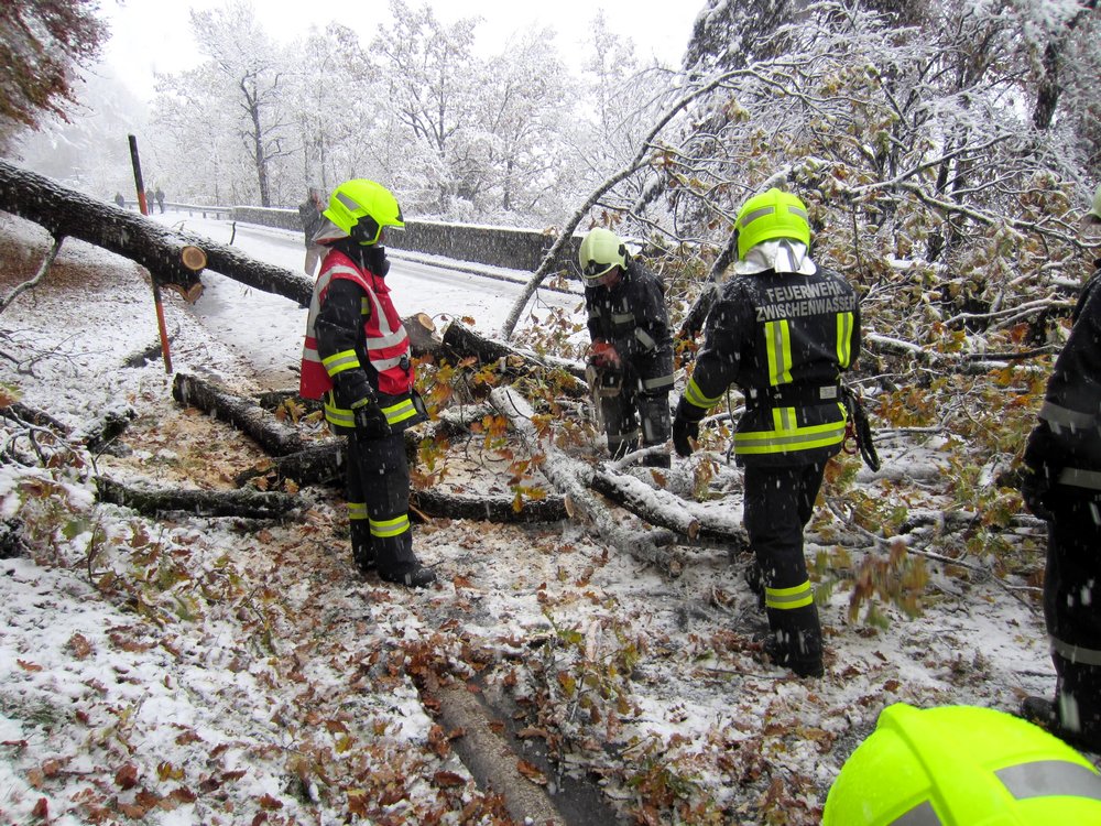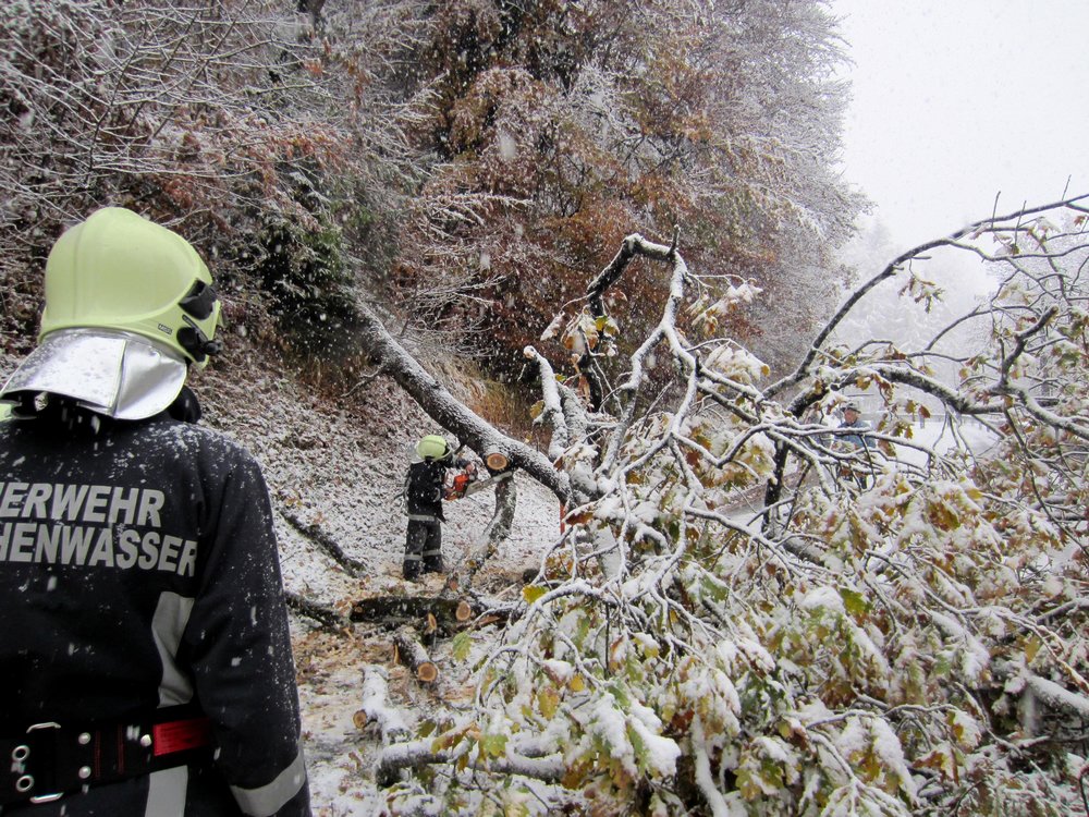 Situation: Dem starken Schneefall hielt ein Baum an der Laternser Straße nicht mehr stand. So wurden wir am Sonntag Nachmittag zur Laternser Straße nach dem Schwarze Rüfe Tunnel (zweiter Tunnel taleinwärts) gerufen. Eine Eiche hatte der Schneelast nicht mehr stand gehalten und blockierte die gesamte Straße. Der Baum wurde mittels Kettensäge zerkleinert und beseitigt. Ein zweiter gefährdeter Baum wurde zur Sicherheit auch noch gefällt und zur Seite geschafft. Nachdem die Fahrbahn wieder frei und gereinigt war, konnte die Straße wieder für den Verkehr freigegeben werden.
