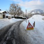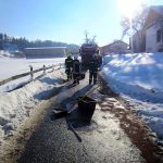 Situation: Bei einem Abfallsammelfahrzeug war gegen Mittag ein Kydraulikschlauch geplatzt. Dies führte zu einem erheblichen Ölaustritt. Das austretende Öl rann über die Schmalzgasse Richtung Tal. Der Fahrer des Fahrzeuges hatte einen kleinen Schneedamm errichtet um das Öl zu sammeln. Die anwesenden Kameraden konnte anschließend, das Öl mit Aluschaufeln abschöpfen, den kontaminierten Schnee abtragen und das restliche Öl mit Bindemittel binden und die Straße säubern. Die gesäuberte Straße wurde anschließend noch mit dem HD des KRF gesäubert. Nachdem die Warntafeln „Ölunfall“ aufgestellt waren, konnte der Einsatz abgeschlossen werden.