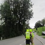 Situation: Aufgrund der heftigen Windböen am Abend bzw. in der Nacht zum Samstag, waren einige Äste bei einem Baum an der Laternser Straße abgebrochen. Am Samstag Vormittag wurden wir alarmiert um die Äste zu beseitigen. Die abgebrochenen Äste hingen in etwa sechs bis sieben Metern Höhe über der Fahrbahn. Vom Einsatzleiter wurde die OF Rankweil mit dem SRF und dem Krankorb nach alarmiert. Mit Hilfe des schweren Rüstfahrzeugs waren die Äste schnell entfernt und die Fahrbahn konnte wieder für den Fahrzeug freigegeben werden.