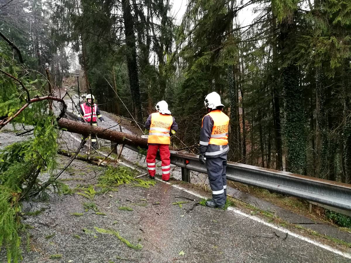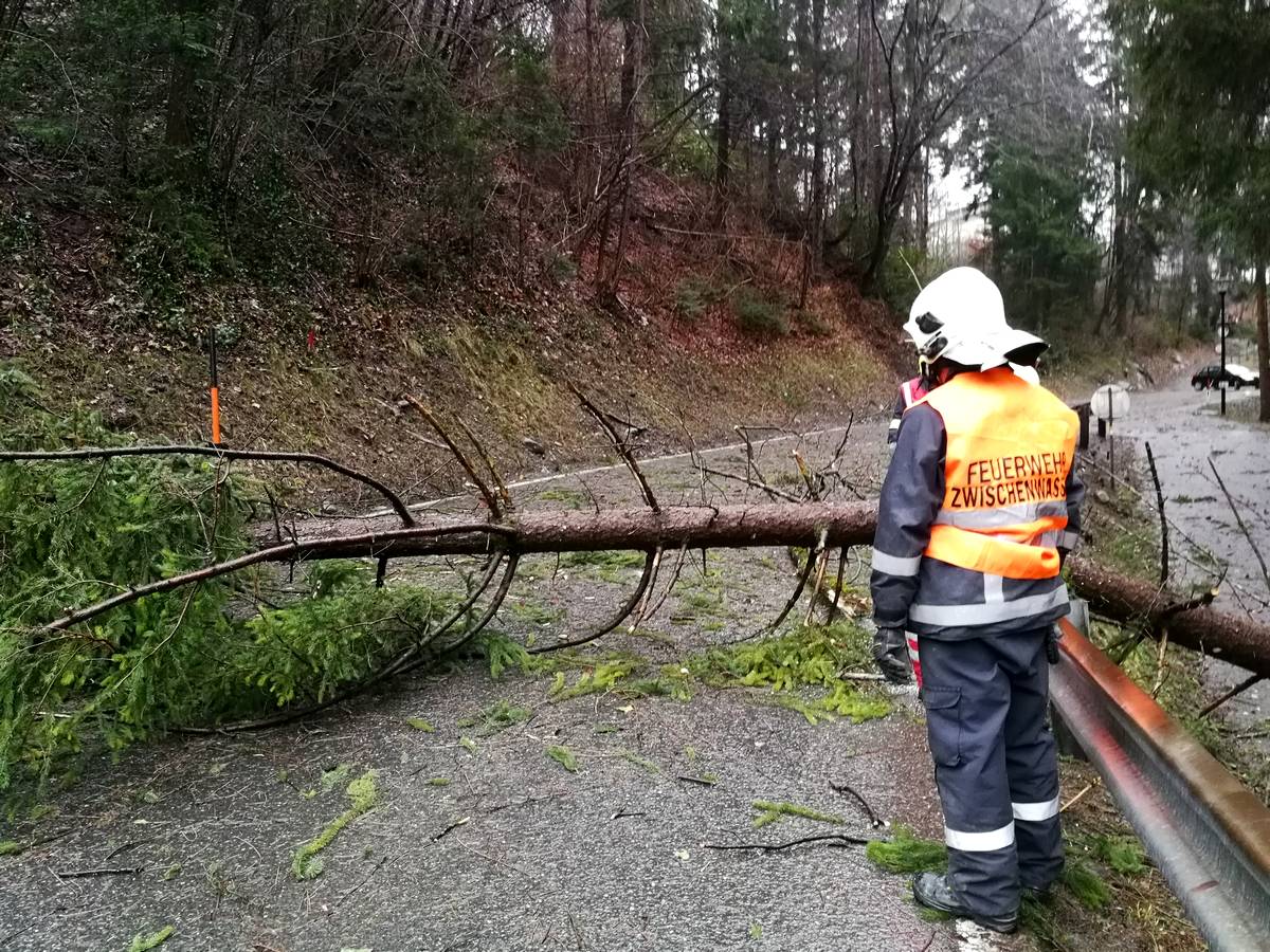Der Sturm brachte mehrere Bäume zum umstürzen. Dadurch waren zahlreiche Straßen blockiert und mussten zeitweise gesperrt werden. Die Aufgaben der OF Zwischenwasser waren: