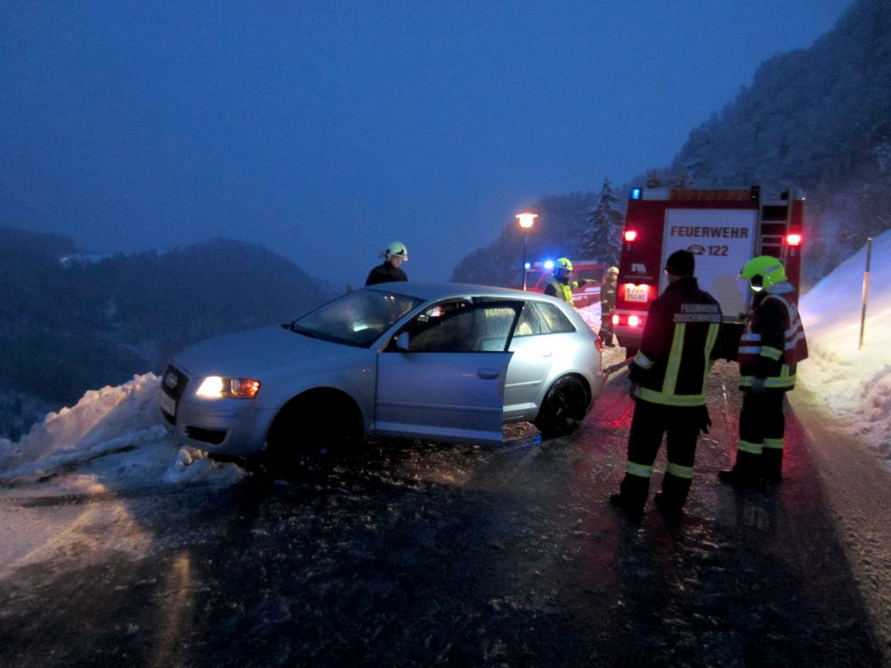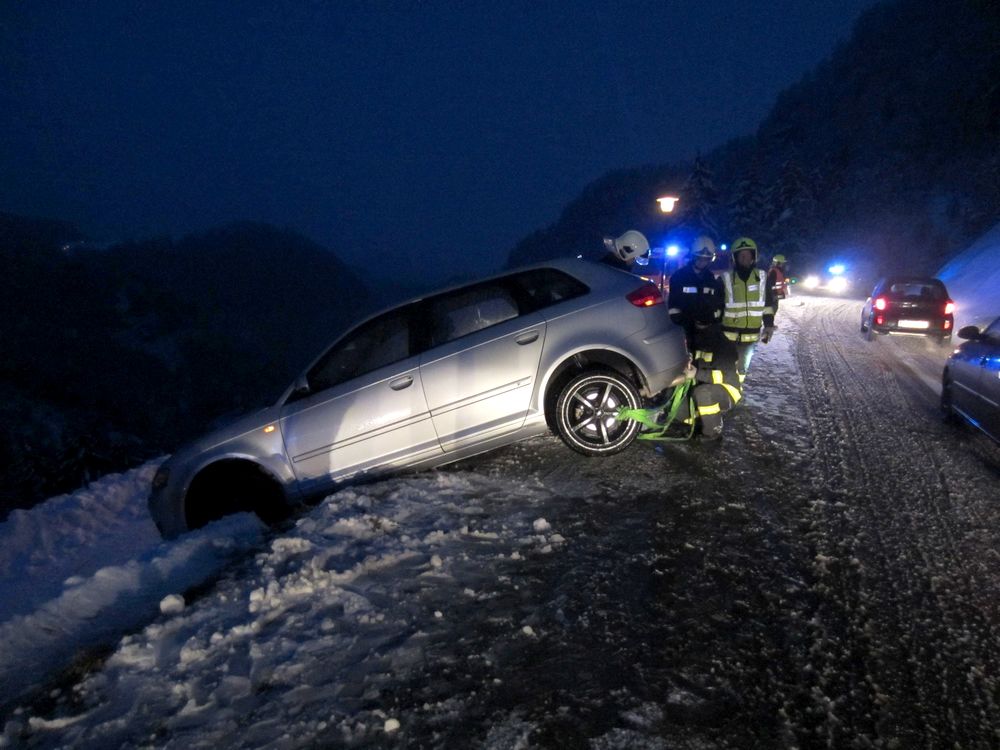 Situation: Aufgrund der winterlichen Straßenverhältnisse war ein Fahrzeuglenker mit seinem PKW über den Straßenrand gerutscht. Am Einsatzort angekommen, konnten wir feststellen, dass der Fahrer unverletzt war und das Fahrzeug an der Straßenkante hängen geblieben war. Sofort wurde das Fahrzeug gesichert. Anschließend konnte der PKW mit dem LFB wieder zurück auf die Straße gezogen werden. Zu den weiteren Aufgaben zählte das Absichern der Unfallstelle und die Verkehrsregelung während der Bergungsarbeiten. Nach etwa einer Stunde konnte der Einsatz abgeschlossen werden.