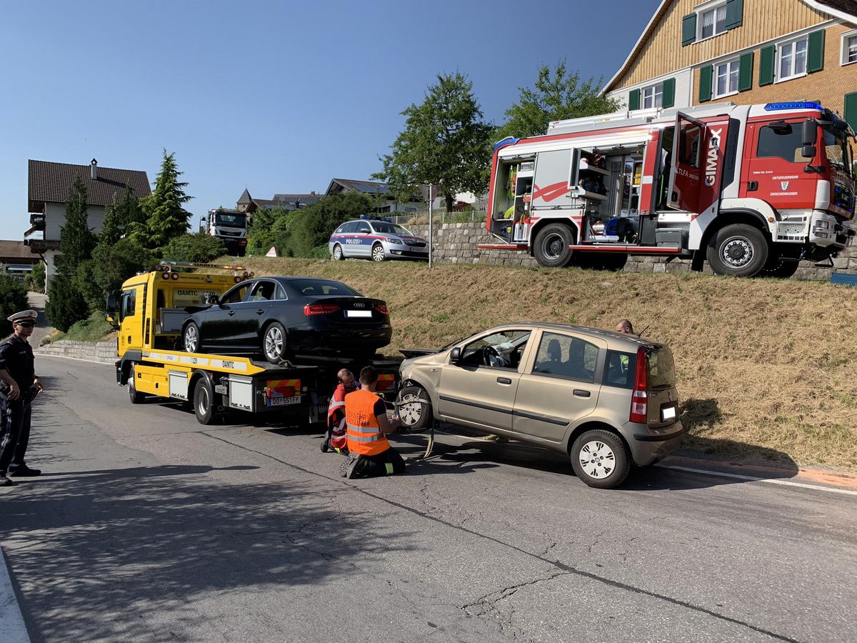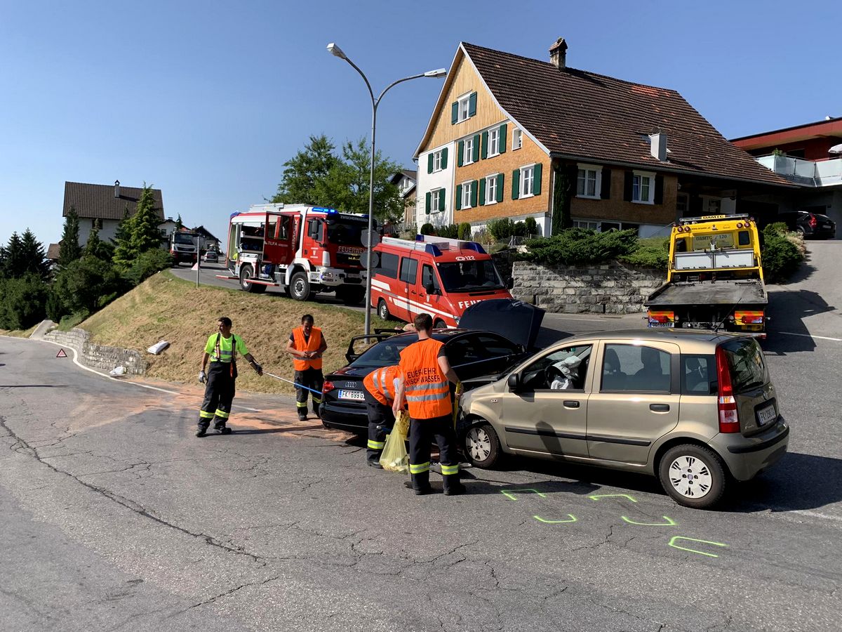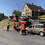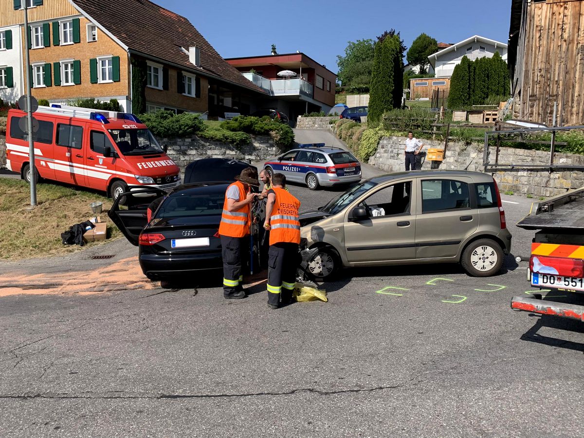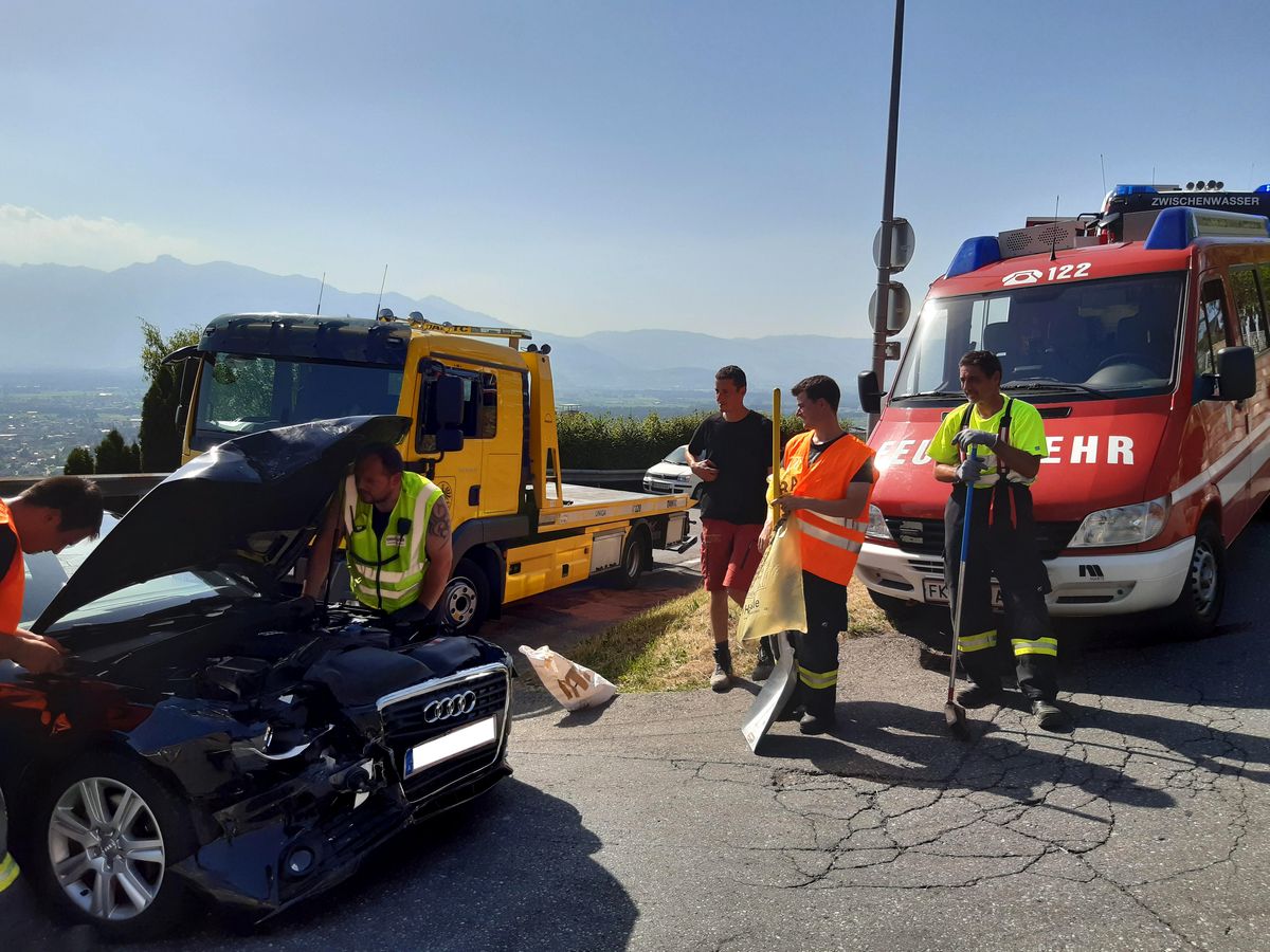 Situation: Bei hochsommerlichen Temperaturen wurden wir am Donnerstag den 27. Juni zu einem Verkehrsunfall nach Batschuns alarmiert. In der Kreuzung Kirchstraße – Laternserstraße hatte sich ein Verkehrsunfall zwischen zwei PKW ereignet. Zu den Aufgaben der OF Zwischenwasser gehörte das Binden von auslaufenden Betriebsflüssigkeiten, die Reinigung der Fahrbahn und Hilfestellung beim Abtransport der beiden Fahrzeuge. Nachdem die Fahrbahn wieder sauber war und die Fahrzeuge abtransportiert waren, konnten wir wieder ins Gerätehaus einrücken.