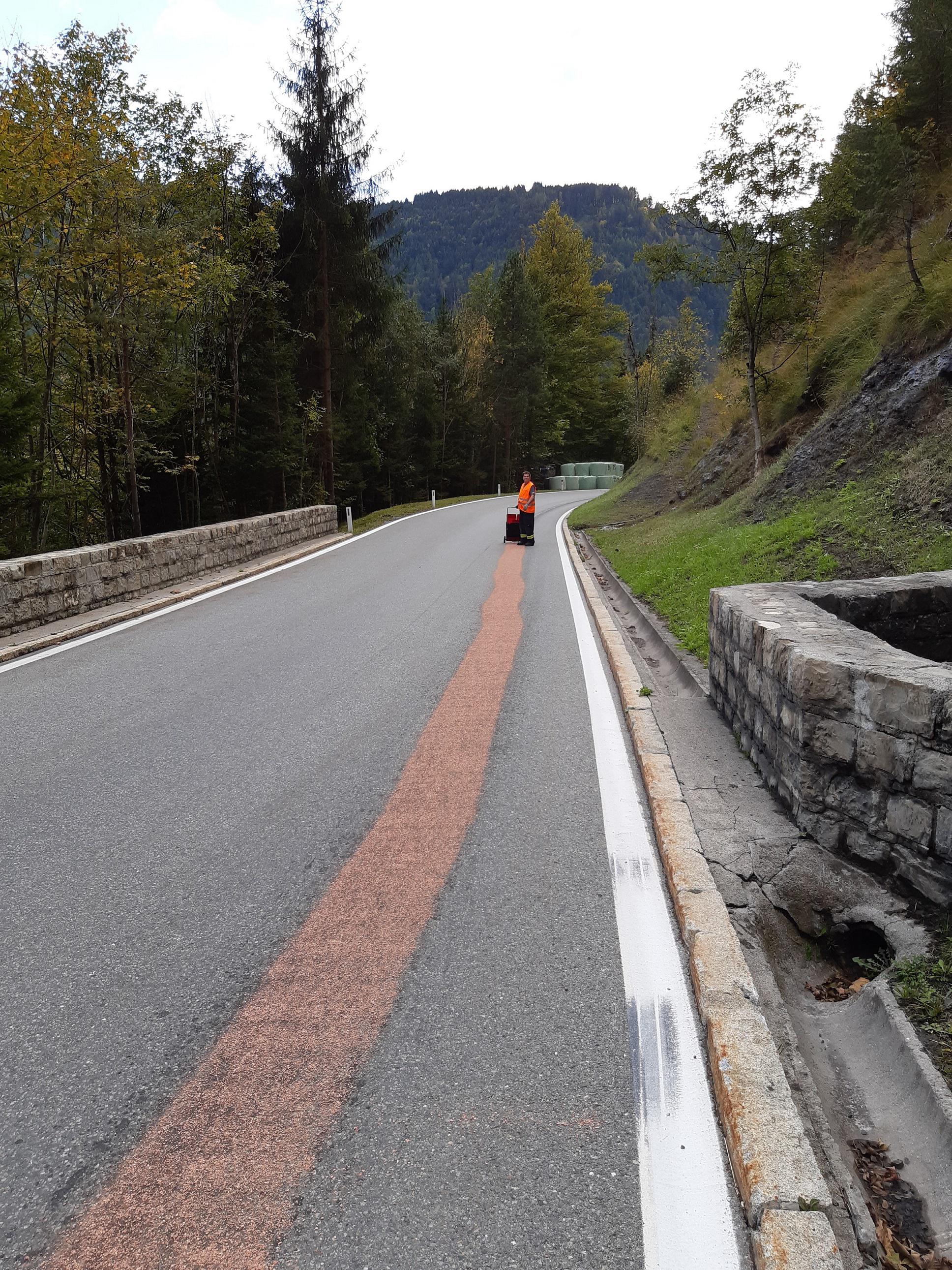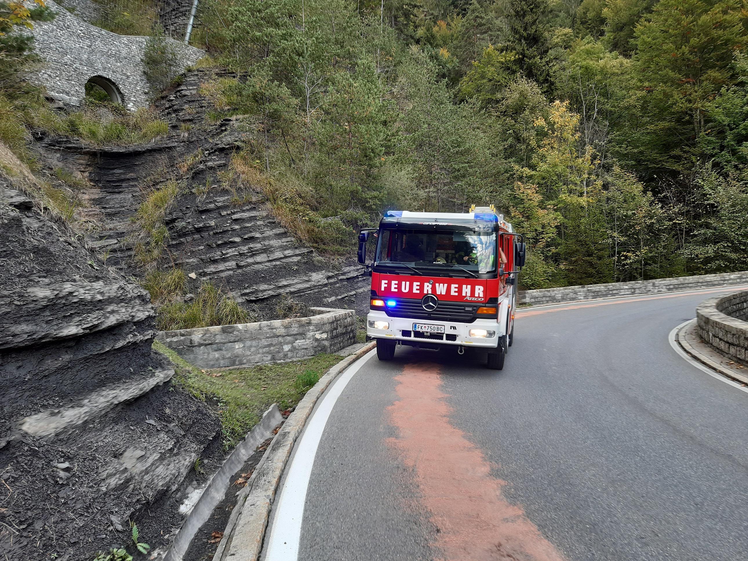 Pagermeldung: t2 ZWISCHENWASSER L51 – LATERNSER STRAßE WENGEN Ölspur nach Tunnel ri Laterns – Unterstützung FW Laterns