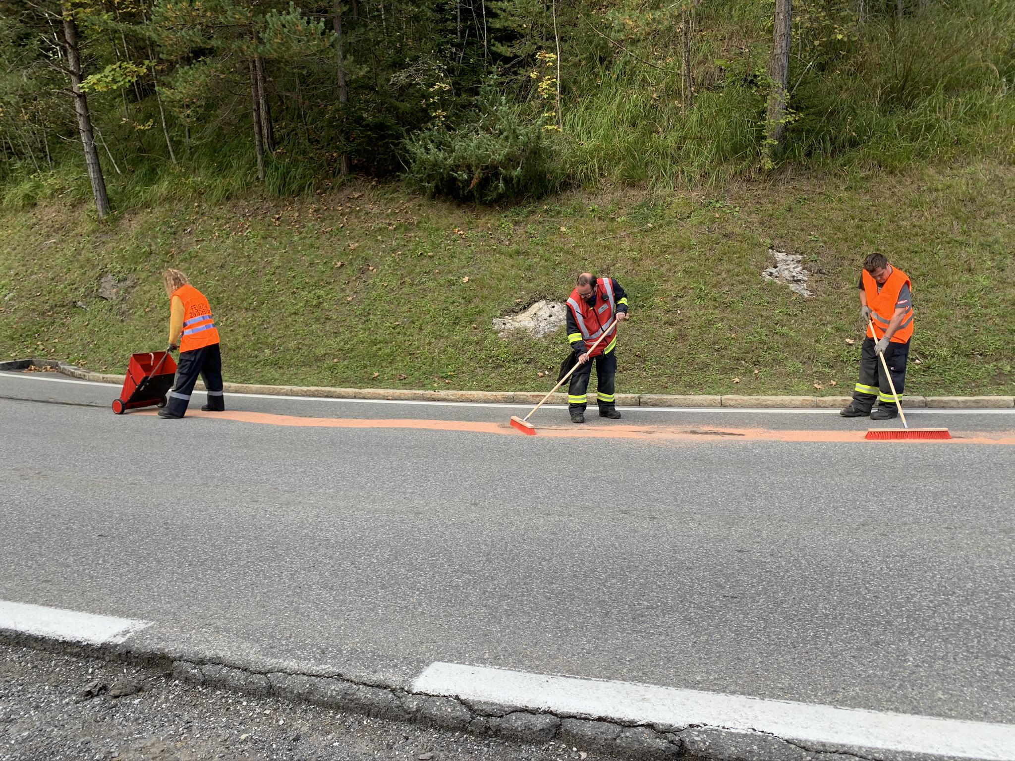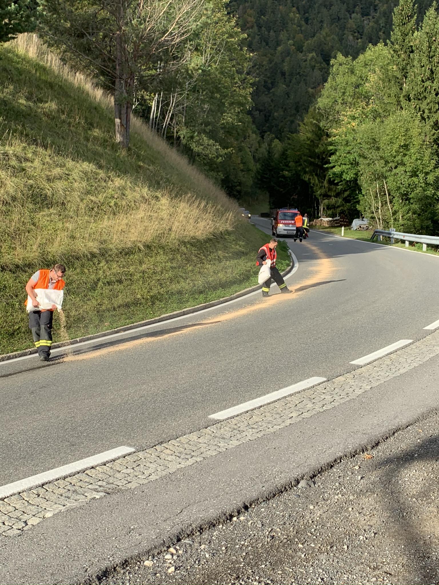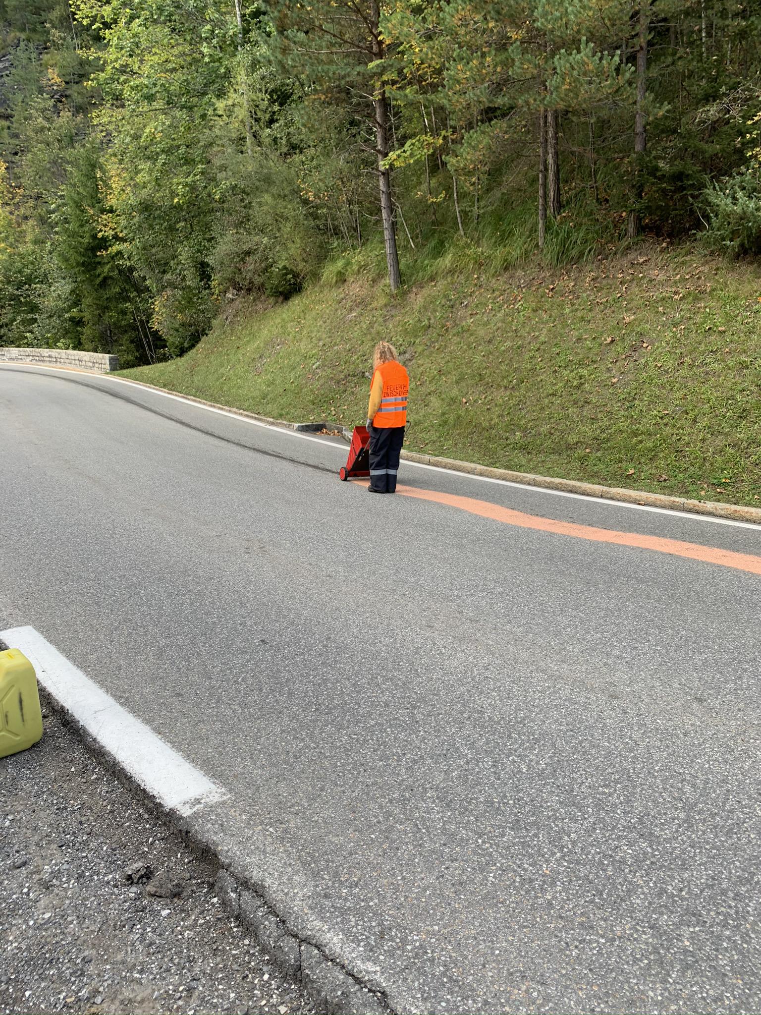 Situation: Am Dienstag Nachmittag hatte ein Fahrzeug auf der Laternserstraße ein längere Ölspur verursacht. Beim Eintreffen am Einsatzort, war die Feuerwehr Laterns bereits mit dem Binden der Ölspur und Säubern der Fahrbahn beschäftigt. Die LFB Mannschaft arbeitete sich von der Ortstafel Wengen Richtung Laterns vor. Die Mannschaft des VF übernahm den Abschnitt Wengen bis zum Tunnelportal. Nachdem die Fahrbahn gereinigt war, wurde die Einsatzstelle an den Straßenerhalter übergeben.