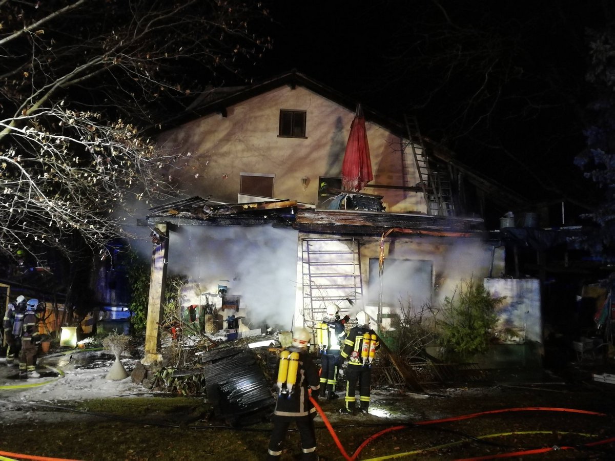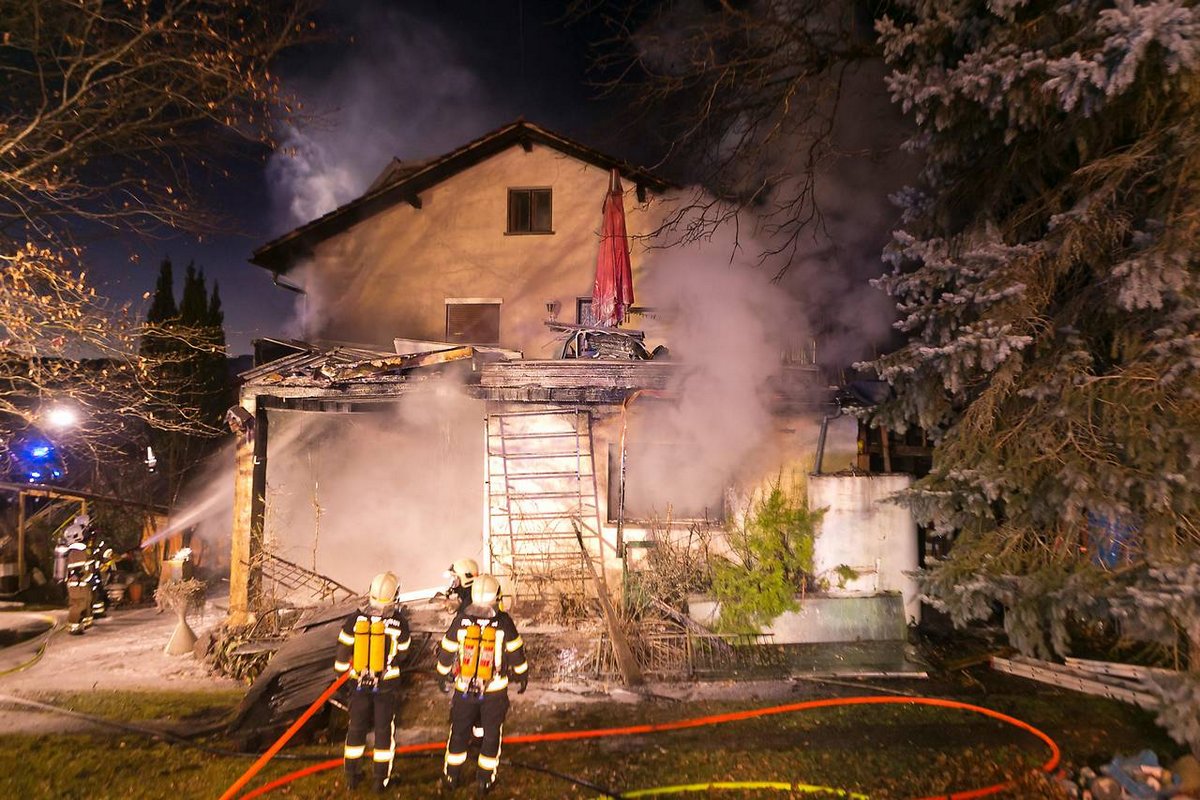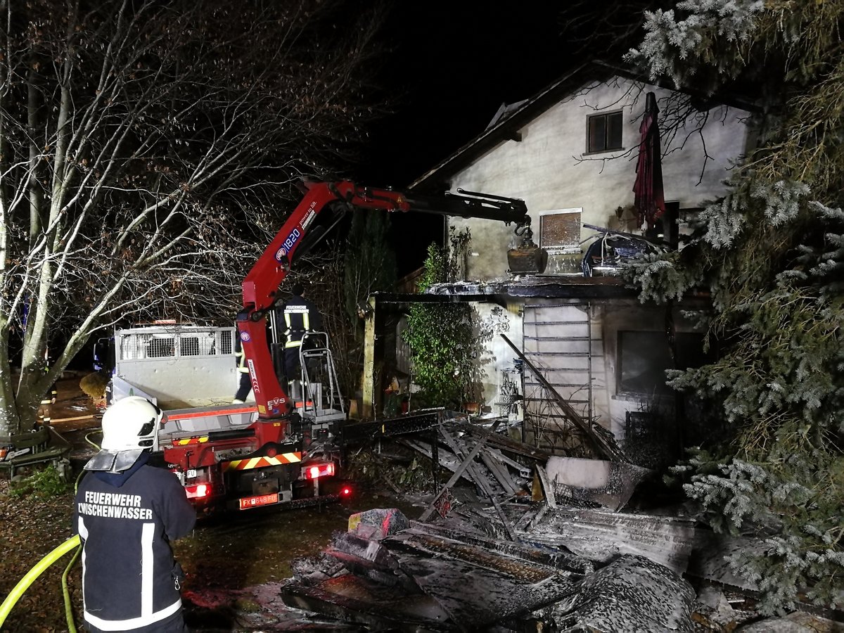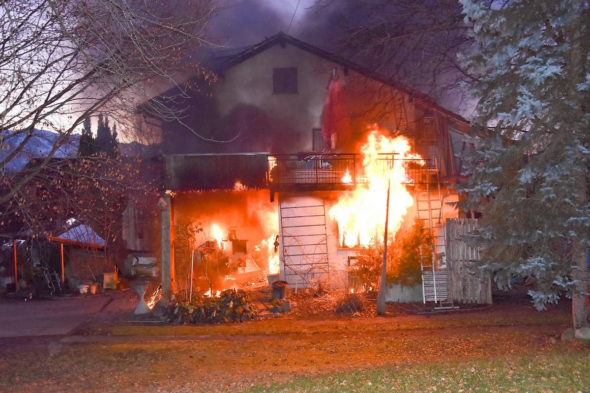 Situation: Beim Eintreffen der Feuerwehr Zwischenwasser stand die direkt ans Haus angebaute Garage bereits in Vollbrand.