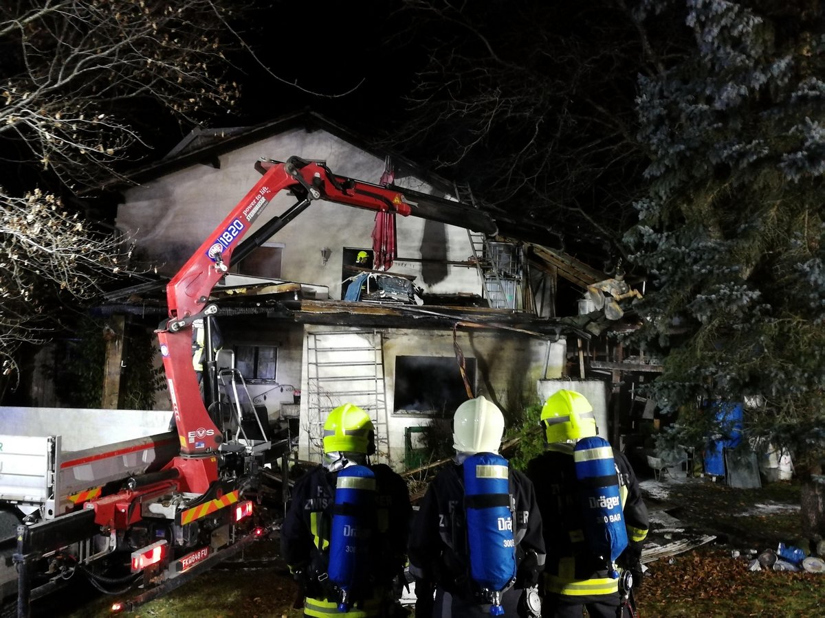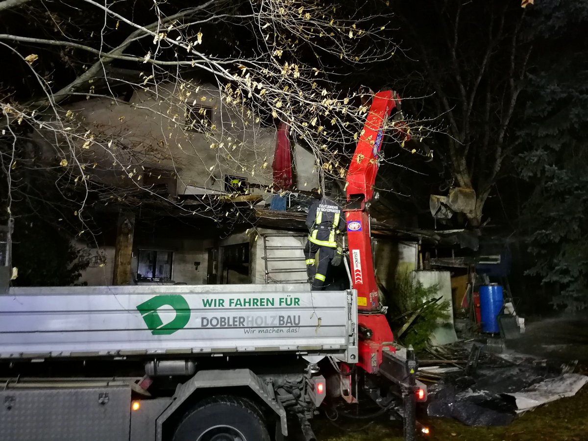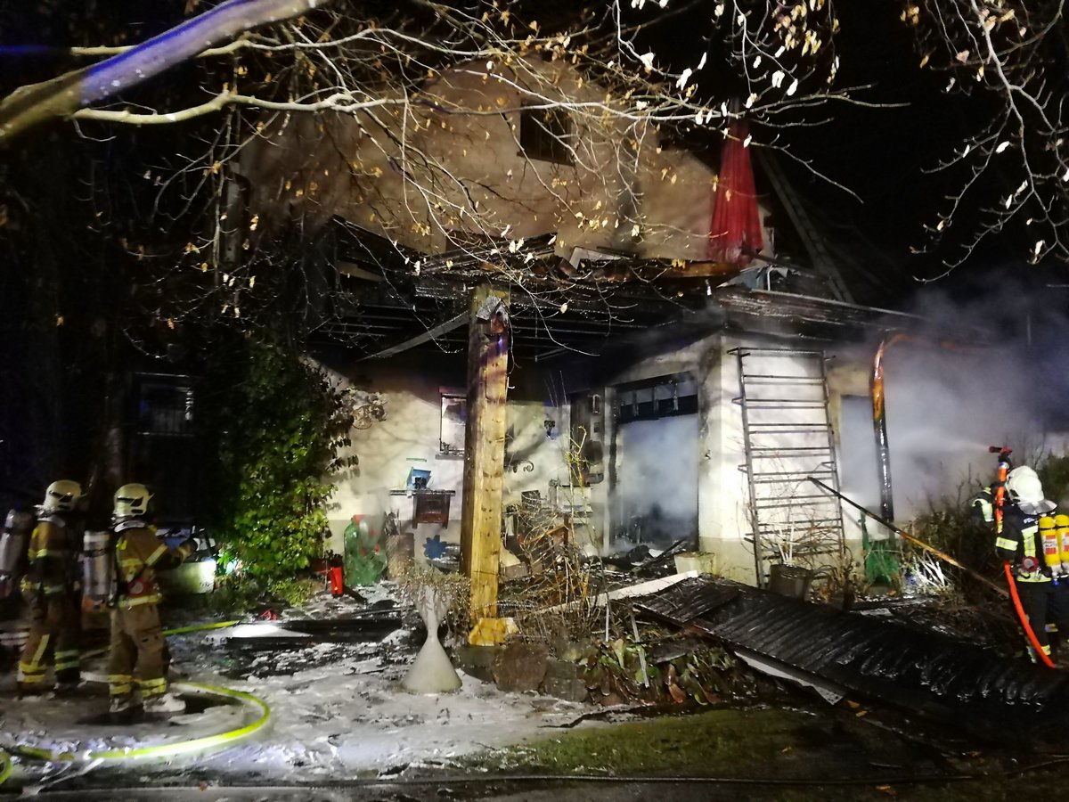 Situation: Beim Eintreffen der Feuerwehr Zwischenwasser stand die direkt ans Haus angebaute Garage bereits in Vollbrand.