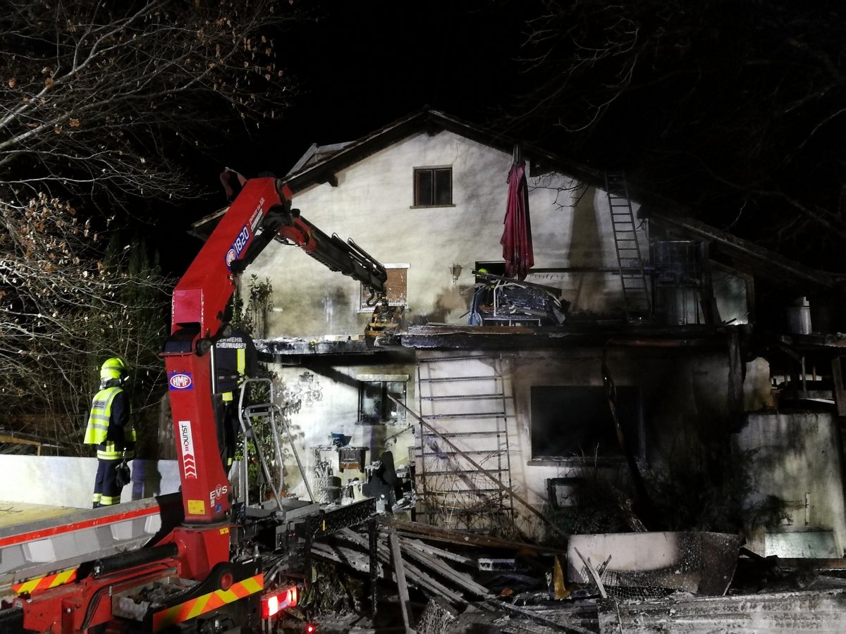 Gemeinsam mit den Feuerwehren Rankweil, Sulz und Röthis, wurde umgehend mit der Brandbekämpfung unter schwerem Atemschutz von außen begonnen. Zudem wurde jeweils ein ATS-Trupp zur Erkundung und Bereitschaft in jedem Stockwerk des Hauses positioniert. Durch den gezielten Einsatz konnte ein Übergreifen auf das Wohnhaus verhindert werden. Die Garage ist jedoch völlig ausgebrannt. Nach dem Löscheinsatz musste der Terassenboden auf der Garage, das Vordach der Garage und der Inhalt der Garage abgetragen und die darunterliegenden Glutnester gelöscht werden.