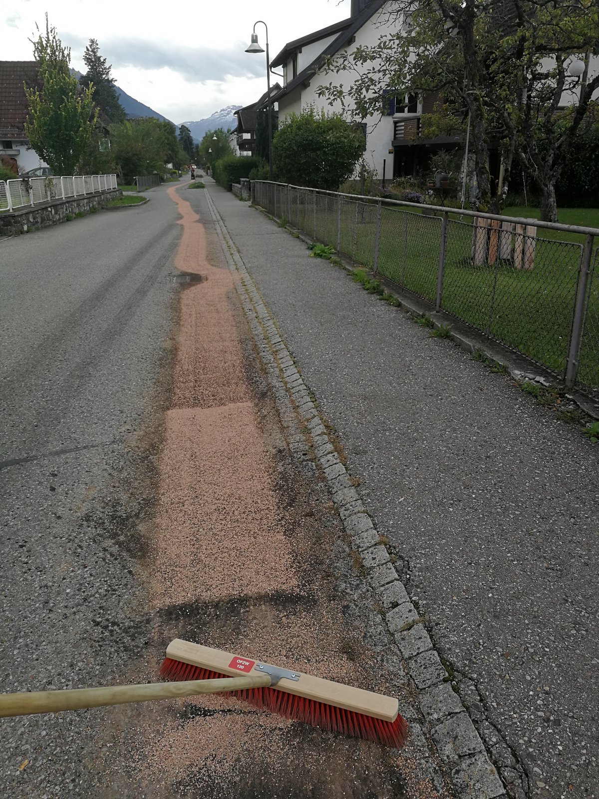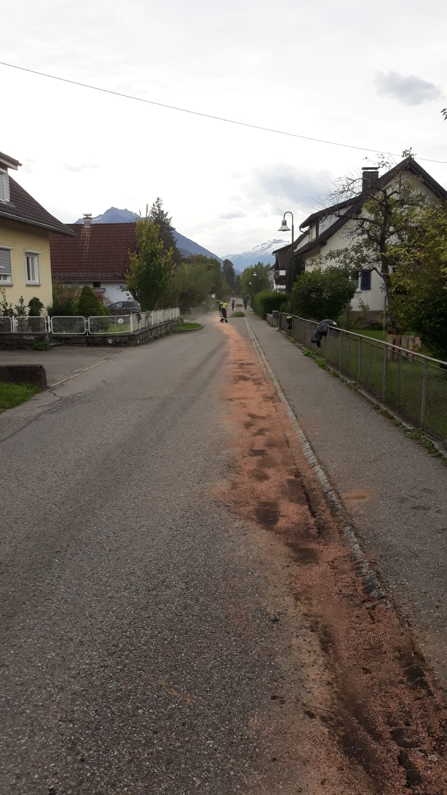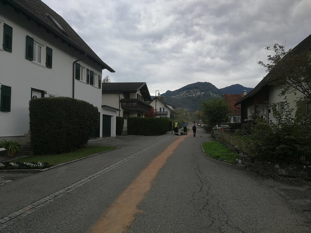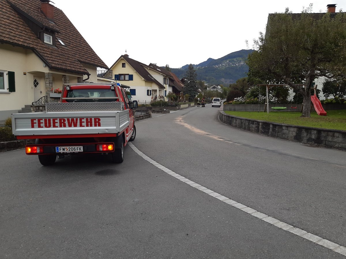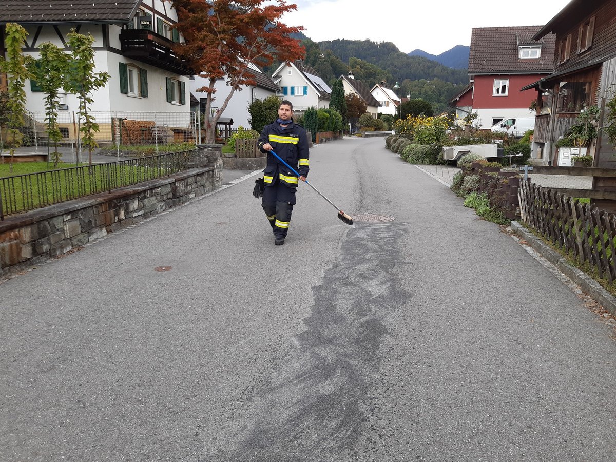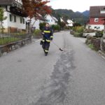 Situation: Nach einem Ausweichmanöver war bei einem PKW die Ölwanne durch einen Stein aufgerissen worden. Der PKW Lenker hatte bereits vor unserem Einsatz versucht das Öl zu binden. Dennoch wurden wir später noch alarmiert um die Ölspur zu binden. Am Einsatzort angekommen stellte sich heraus, dass die Ölreste bereits getrocknet waren. Mit Ölbindemittel und Besen wurden die stark verschmutze Stellen nochmal bearbeitet. Zudem wurden die „Öl-Unfall“ Warntafeln aufgestellt. Nach etwa einer Stunde konnten wir wieder ins Gerätehaus einrücken.