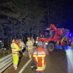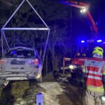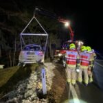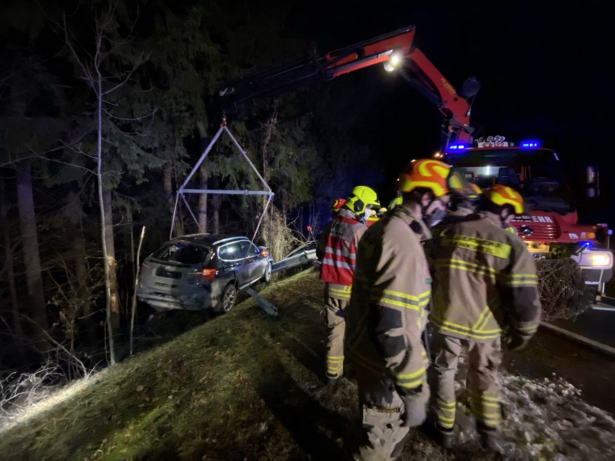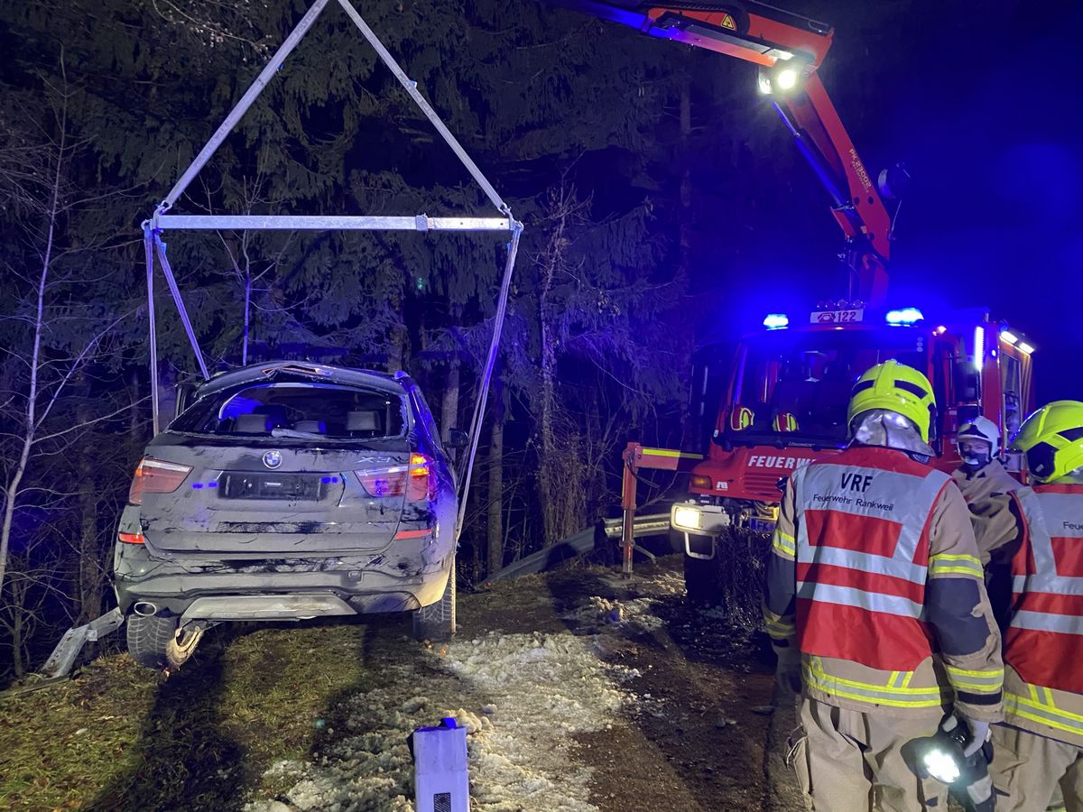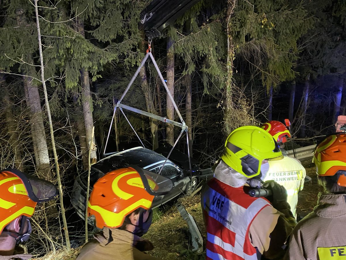 Situation: Kurz vor zwei Uhr, wurden wir zu einem Verkehrsunfall nach Batschuns alarmiert. Ein PKW, mit vier Personen besetzt, war auf der Laternserstraße talwärts unterwegs. In der Rechtskurve vor dem Ortseingang Batschuns, hatte das Fahrzeug die Leitschiene durchbrochen und war im steil abfallenden angrenzenden Wald in den Bäumen hängen geblieben. Bei unserem Eintreffen sicherten wir die Unfallstelle ab. Die vier Unfallbeteiligten wurden an den Rettungsdienst übergeben. Die Feuerwehr Rankweil war mit dem SRF (Schweres Rüstfahrzeug) Vorort. Nach Absprache mit der Polizei, konnte mit der Beregung des Fahrzeugs begonnen werden. Das Unfall Wrack wurde anschließend vom ÖAMTC abgeholt. Nachdem die Unfallstelle im Bereich der durchbrochenen Leitschiene mit Absperrband gesichert war, konnte der Einsatz gegen vier Uhr beendet werden.
