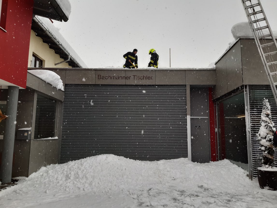 Situation: Aufgrund der anhaltenden Schneefälle, musste bei einer Tischlerei in Muntlix das Glasdach vom Schnee befreit werden. Mit Schaufeln wurden ca. 150 m² Dachfläche vom Schnee befreit. Nach ca. 1¾ Stunden konnte der Einsatz erfolgreich beendet werden. Der nächste Einsatz sollte gleich folgen…