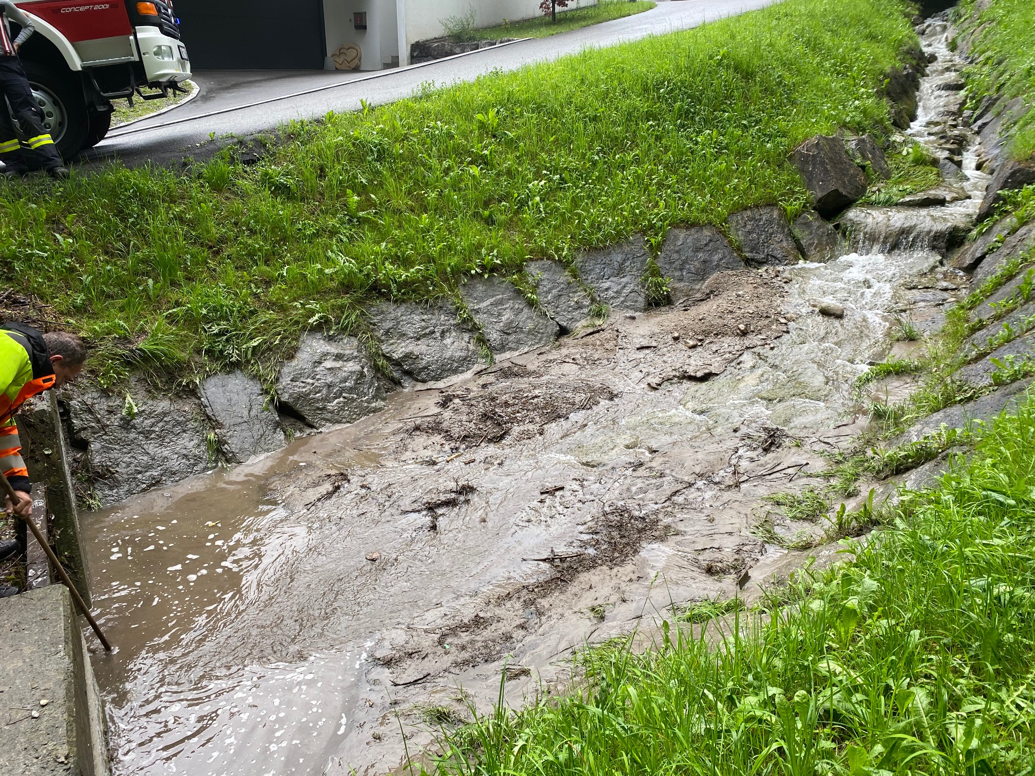 Situation: Telefonisch wurden wir zu einem weiteren Einsatz gerufen. Beim Eschenrain-Bach war der Rechen verstopft und der Bach droht überzugehen. Gemeinsam mit dem Bauhof-Team wurden alle Rechen gereinigt und der gesamte Bachlauf bis zur Frödisch kontrolliert. Gegen 19 Uhr konnten wir dann auch den letzten Einsatz dieses Starkregenereignisses abschließen.