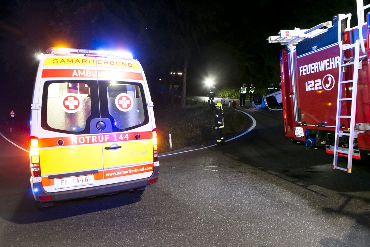 Pagermeldung: t2 ZWISCHENWASSER L51 – LATERNSER STRAßE LATERNSER STRAßE / nach der zweiten Kehre bergwärts [V.U./mit Verletzung] PKW überschlagen > liegt auf dem Dach > 2x leicht verl. Person > schockiert