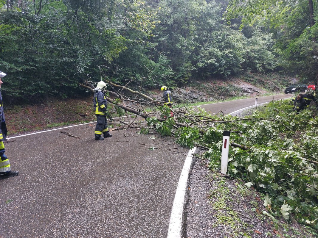 Pagermeldung: t9 ZWISCHENWASSER L71 – DAFINSER STRAßE > kurz vor Ortseinfahrt Dafins [UNWETTEREINSATZ] Baum über Straße im Wald