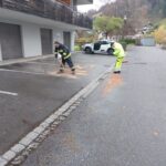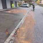 Situation: Auf dem Parkplatz der örtlichen Arzt-Praxis hatte ein KFZ Öl oder Diesel verloren. Durch die nasse Fahrbahn und andere Verkehrsteilnehmer wurde der Betriebsstoff auf dem Parkplatz und der Fahrbahn verteilt. Nach Verständigung durch die Arzthelferin, rückten vier Kameraden zum Einsatzort aus. Mit Hilfe von Bindemittel und Besen wurde der Betriebsstoff gebunden und die Fahrbahnflächen gereinigt. Kurz vor 13 Uhr war der Einsatz abgeschlossen und die Kameraden konnten wieder in Gerätehaus einrücken.