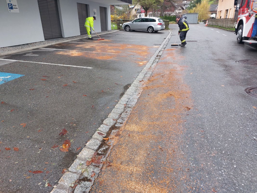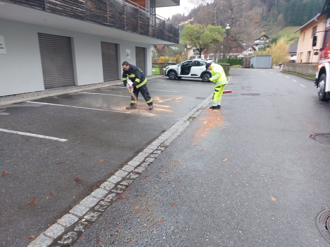 Pagermeldung: t1 ZWISCHENWASSER HAUPTSTRAßE 2 ord.dr.krismer ulrich / beim Parkplatz > ca 3m2 Ölfleck