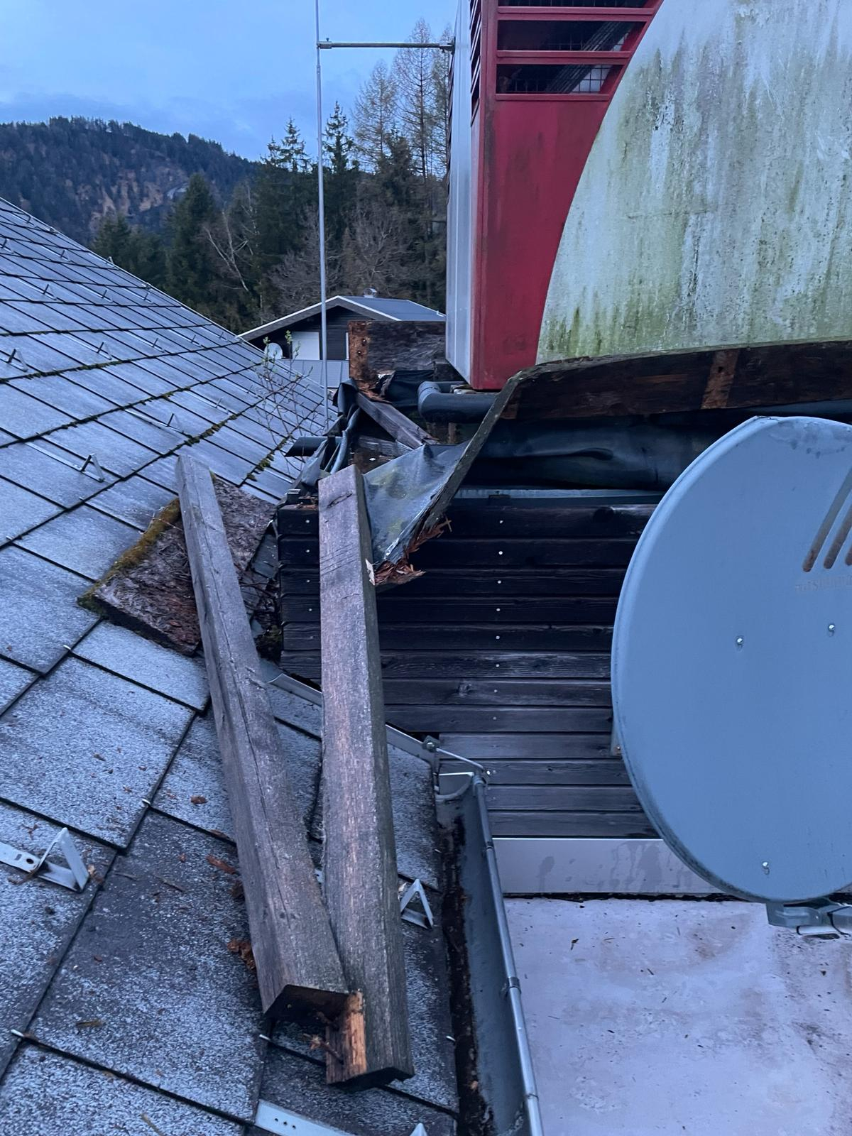 Pagermeldung: t1 ZWISCHENWASSER OBERBERG XX > Sturmschaden – Fassadenteil droht abzustürzen