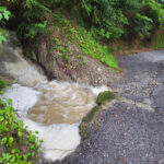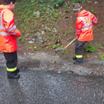 - Ausgeschwemmter Kies vom Bankett von der Straße geräumt