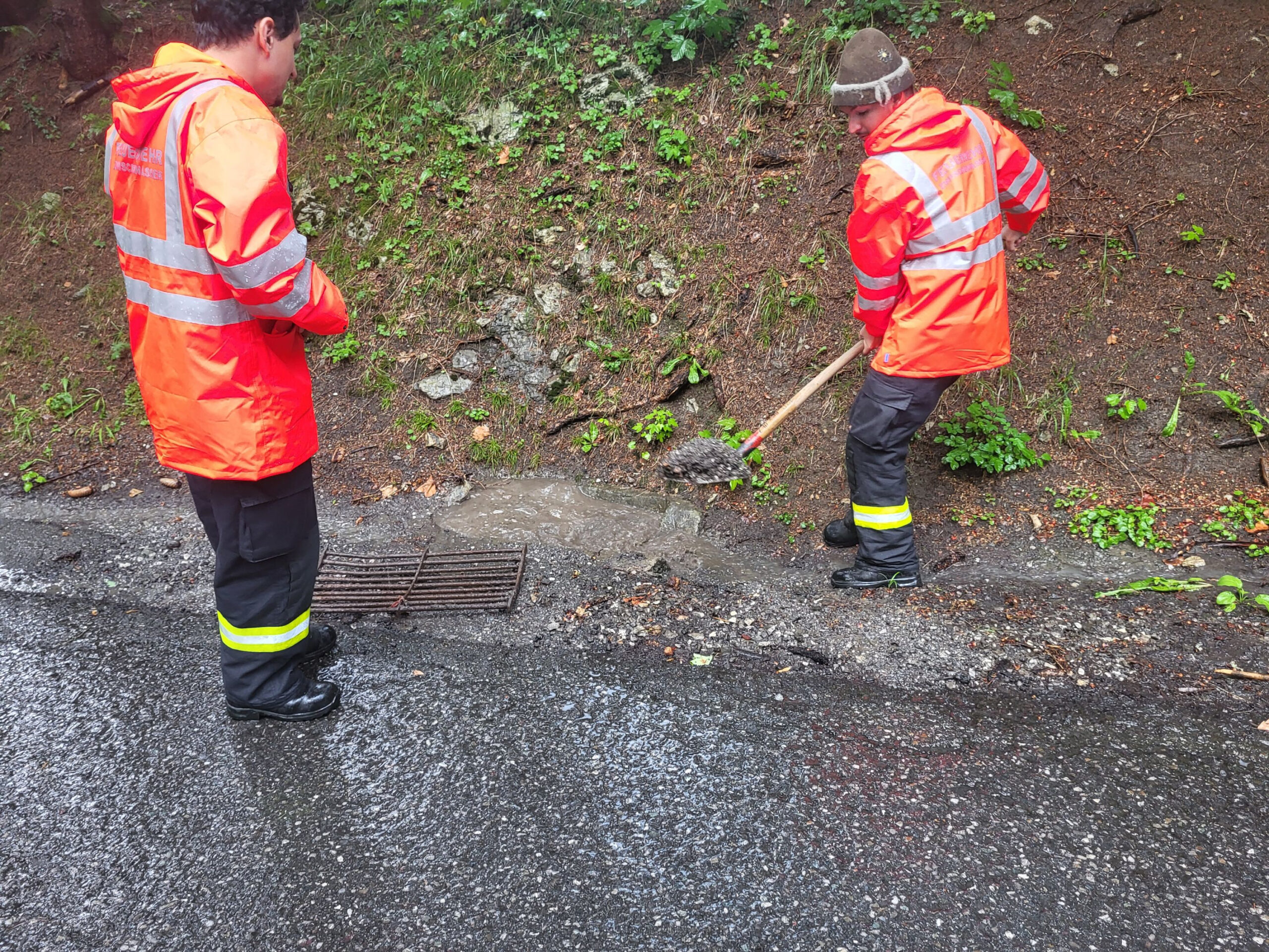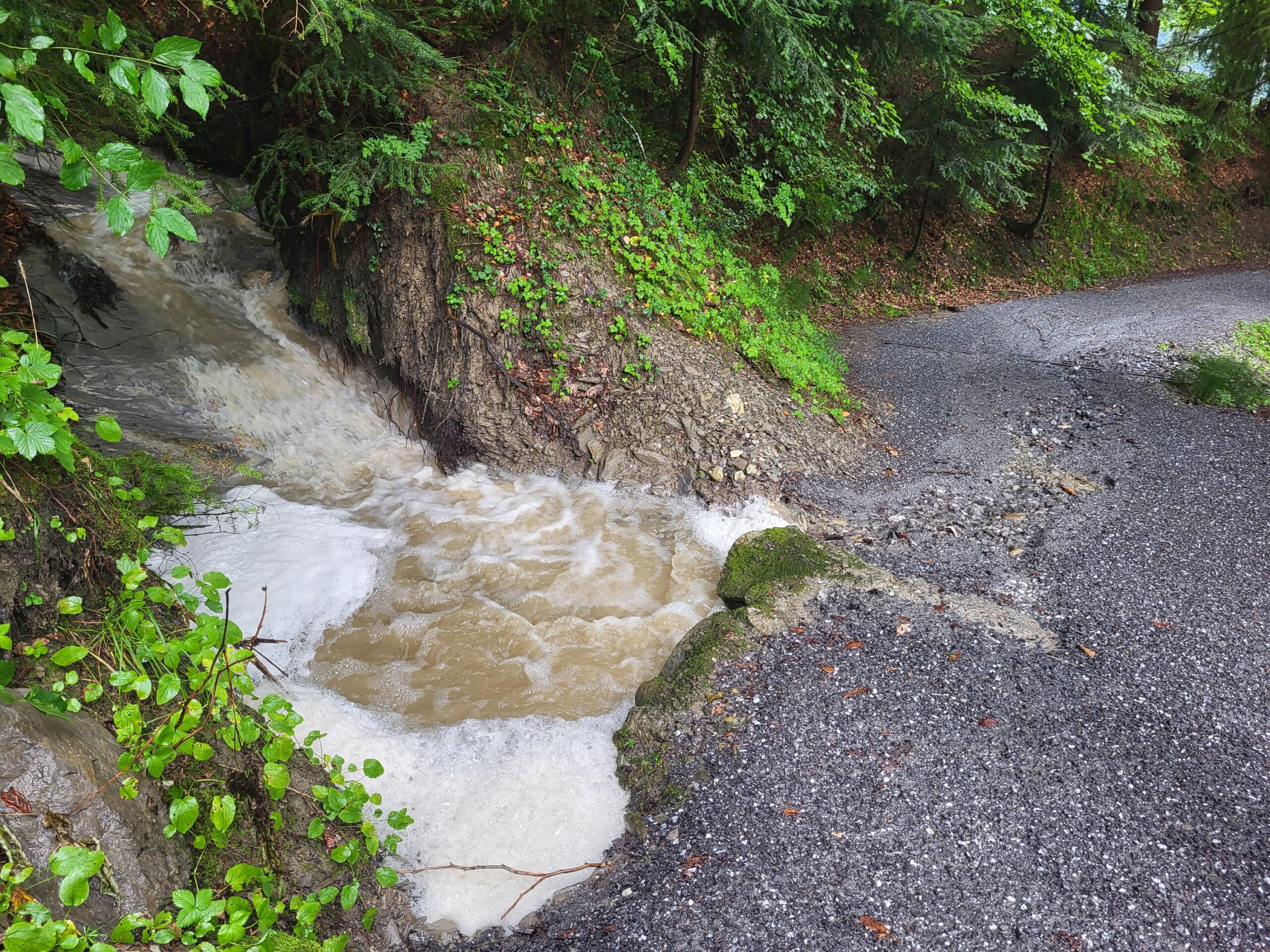 Situation: Besonders in Dafins hatte der Starkregen zu mehrere Einsatzstellen geführt. Im gesamten Ortsgebiet waren Maßnahmen erforderlich: