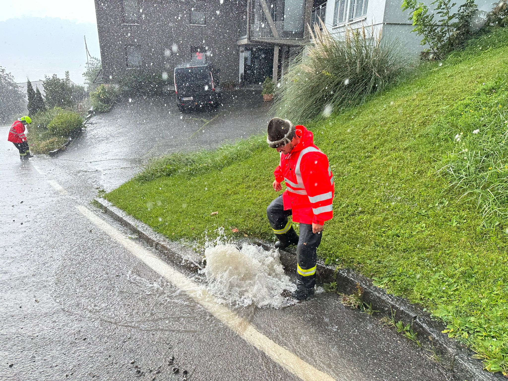 Zudem war in eine Garage im Lindenbodenweg Wasser eingedrungen. Die Garage konnte mit Nasssauger und Tauchpumpe wieder trockengelegt werden.