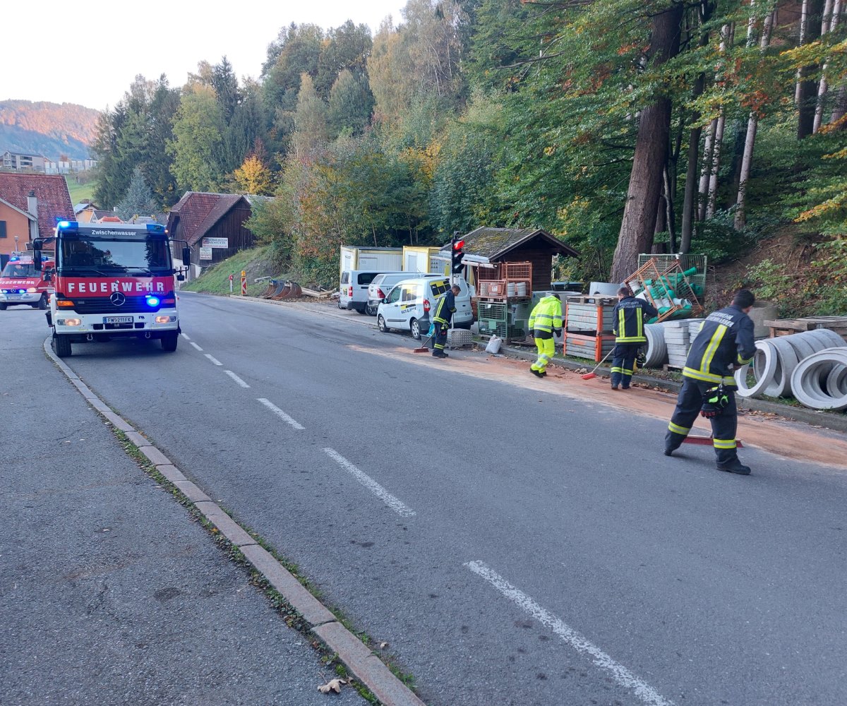 Pagermeldung: t1 ZWISCHENWASSER L51- LATERNSER STRAßE / Höhe Waldrast > Ölspur ca 20m > Betriebsstoffe ausgelaufen