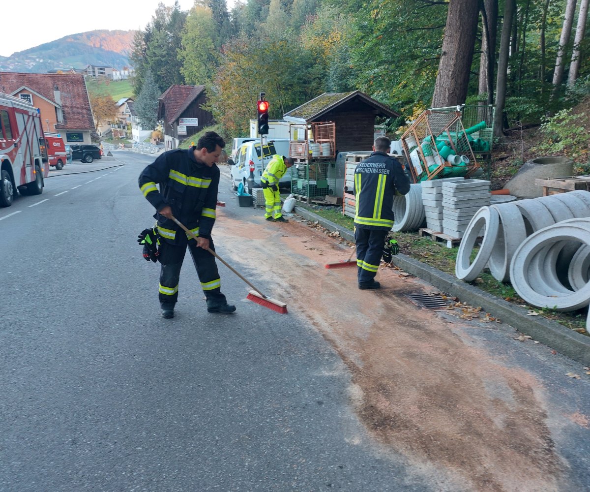 Situation: Nach dem Einsatz in der Nacht, folgte am Mittwoch Morgen ein weiterer Einsatz. Durch einen PKW, wurde eine ca. 30 Meter lange Dieselspur verursacht. Der Einsatzort befand sich auf der Laternser Straße, im Bereich Pension Waldrast. Mit Hilfe von Bindemittel und Besen konnte die Fahrbahn rasch gereinigt werden. Nachdem auch die Warntafeln „Öl-Unfall“ aufgestellt waren, konnte der Einsatz bereits abgeschlossen werden.