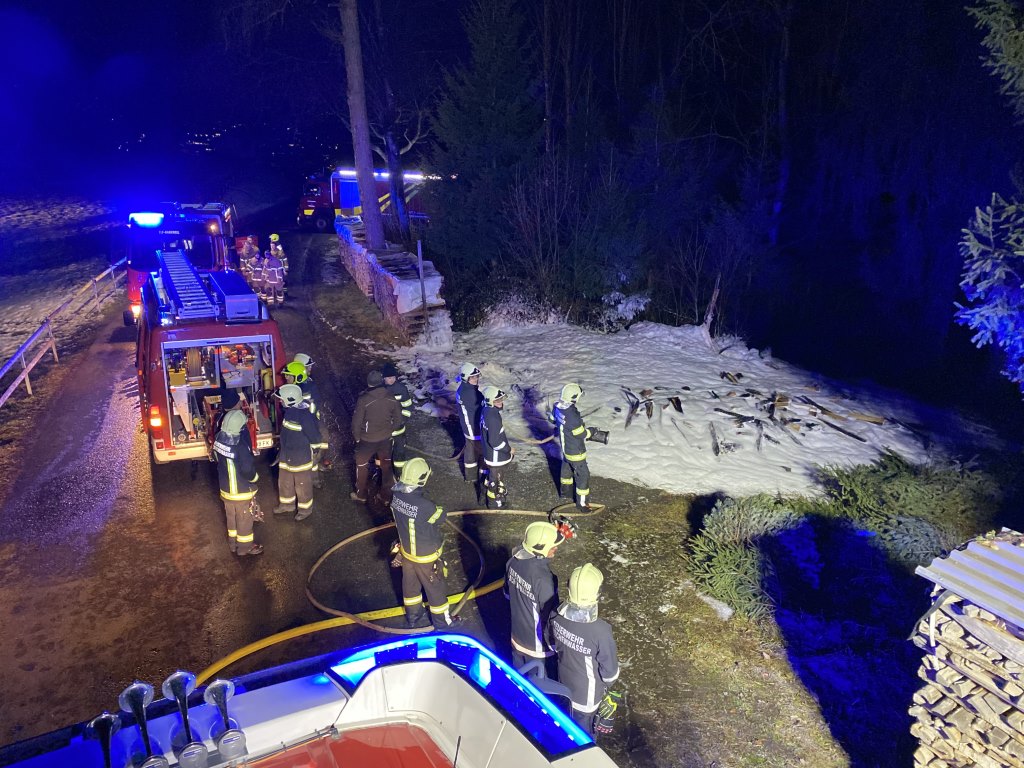 Erste Löschversuche wurden bereits durch die Polizeistreife mittels Feuerlöscher getätigt. Unter schwerem Atemschutz konnte der Holzstabel gelöscht und zerlegt werden. Mit Hilfe eines Schaumteppichs konnte das Brandgut zuverlässig abgelöscht werden. Dank der Hilfe von Kameraden aus Rankweil, konnte der Einsatz nach ca. zwei Stunden abgeschlossen werden.