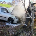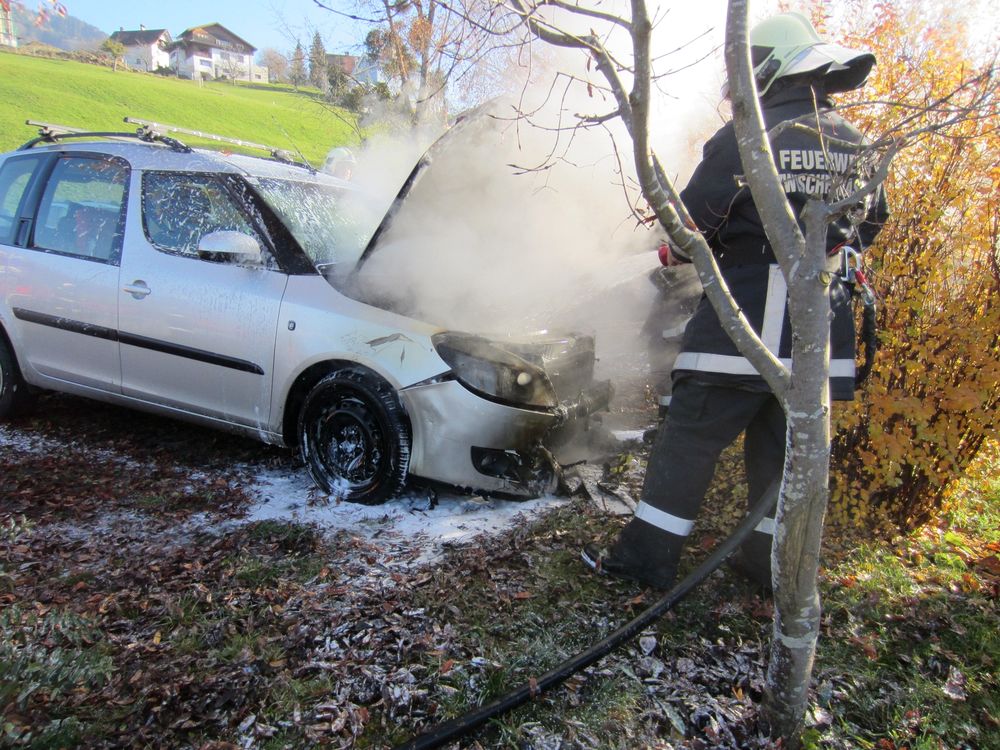 Situation: Am Montag Nachmittag kam es in Batschuns auf dem Parkplatz des Bildungshauses zu einem PKW- Brand. Passanten, die dies bemerkten alarmierten unverzüglich die Feuerwehr. Nach dem Eintreffen am Einsatzort kamen die Flammen bereits aus dem Motorraum des Fahrzeuges. Mit der Örtzen – Anlage unseres in Batschuns stationierten KLF´s konnte der Brand aber rasch eingedämmt und bekämpft werden. Mit dem Hochdruckrohr des Tanklöschfahrzeuges wurden anschließend noch Nachlöscharbeiten durchgeführt!