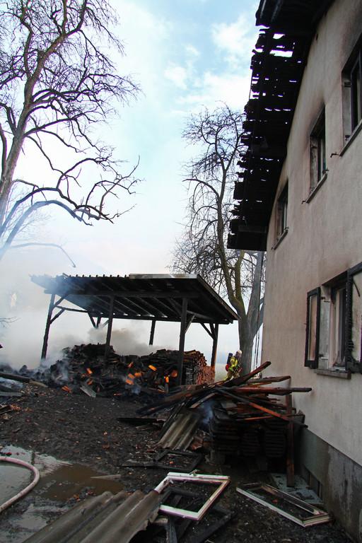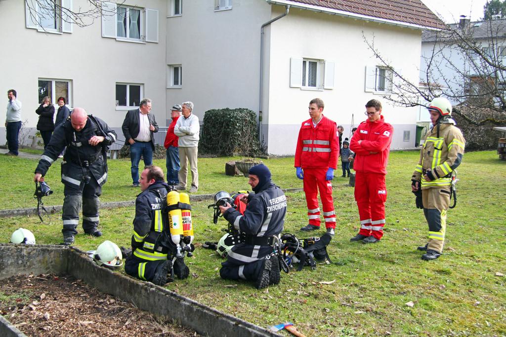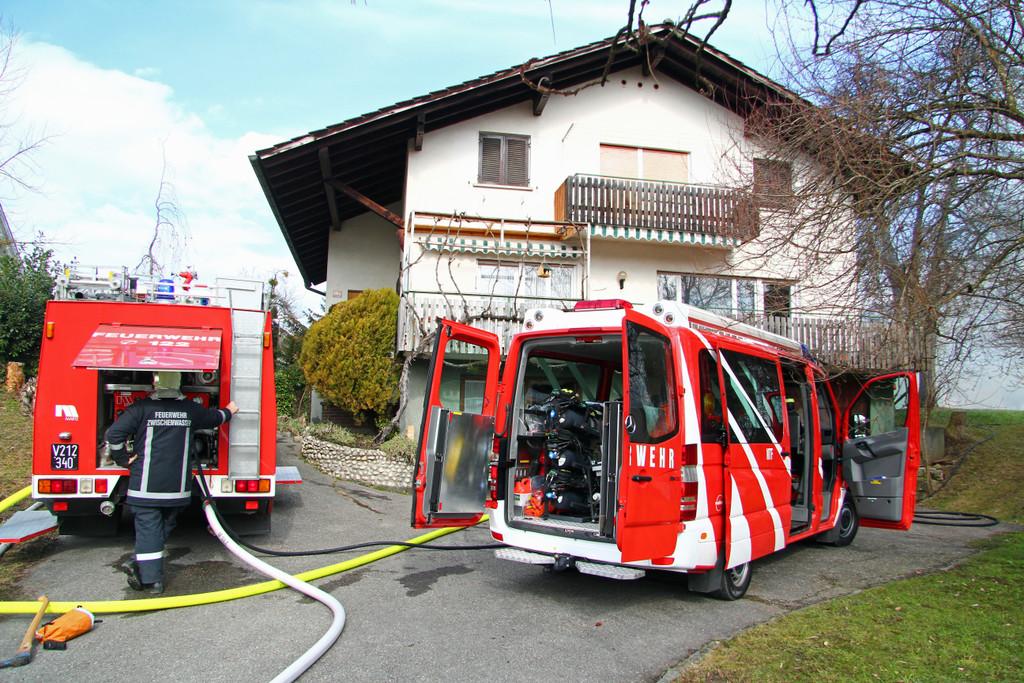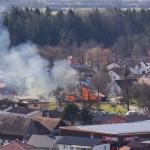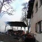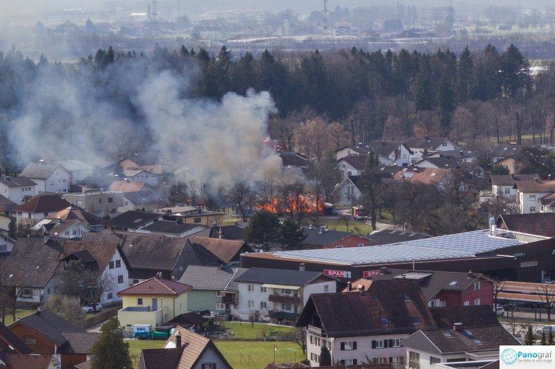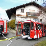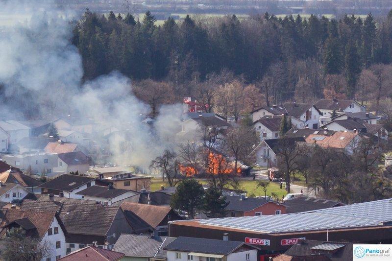 Situation: Am Dienstag Nachmittag kam es in Sulz zu einem Brand eines Holzschuppens. Das Feuer drohte auf Grund des starken Windes auf das angrenzende Wohnhaus überzugreifen. Die Feuerwehr Sulz, die bereits im Einsatz stand, veranlasste die Nachalarmierung der Feuerwehren Röthis, Zwischenwasser und Klaus mit der Wärmebildkamera. Wir rückten unverzüglich zum Einsatzort aus. Unsere Aufgabe bestand darin, im Dachboden mittels Atemschutz und Schnellangriffseinrichtung ein Übergreifen des Feuers auf noch intakte Teile des Wohnhauses zu verhindern. Der Brand hatte den Dachstuhl bereits erfasst, wir konnten die Ausbreitung jedoch verhindern. Den Feuerwehren gelang es, das Wohnhaus zu halten und den Brand des Holzschuppens zu löschen.