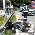 Situation: Kurz nach Mittag wurden wir zu einem Verkehrsunfall in Muntlix gerufen. Ein junger Motorradfahrer, streifte nach einem Überholmanöver auf der Laternserstraße, die Böschung auf der rechten Straßenseite. Dadurch kam er zu Fall, schlitterte über die Fahrbahn und kam unter der Leitschiene zum liegen. Wir banden die ausgelaufenen Flüssigkeiten mit Ölbindemittel, reinigten die Fahrbahn und transportierten anschließend das völlig zerstörte Motorrad ab. Zudem wurden von uns noch die „Ölunfall“-Warntafeln aufgestellt.