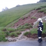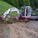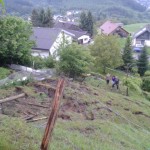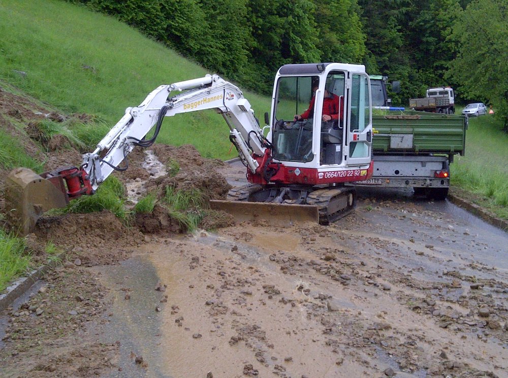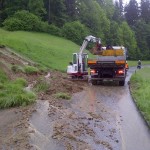 Wie sich herausstellte gab es viele Einsatzstellen die abgearbeitet werden mussten. In Batschuns ereignete sich ein Hangrutsch auf die Furxstraße. Zum Glück waren keine Personen, Gebäude und sonstige Sachgüter betroffen. In Dafins machte weiterhin die Hangrutschung Probleme. Durch die Bewegungen im Gelänge war auch eine Wasserleitung gebrochen. Ein weiterer Hangrutsch ereignete sich dann am Sonntag Vormittag. Im Bereich Batschuns Platte/Kirchstraße hielt ein steiler Hang den Wassermaßen nicht mehr stand. Durch den Hangrutsch, wurde auch einem Strommasten der Halte genommen. Mit einem Greifzug sicherten wir den Strommasten, sodass weitere Schäden verhindert werden konnten.