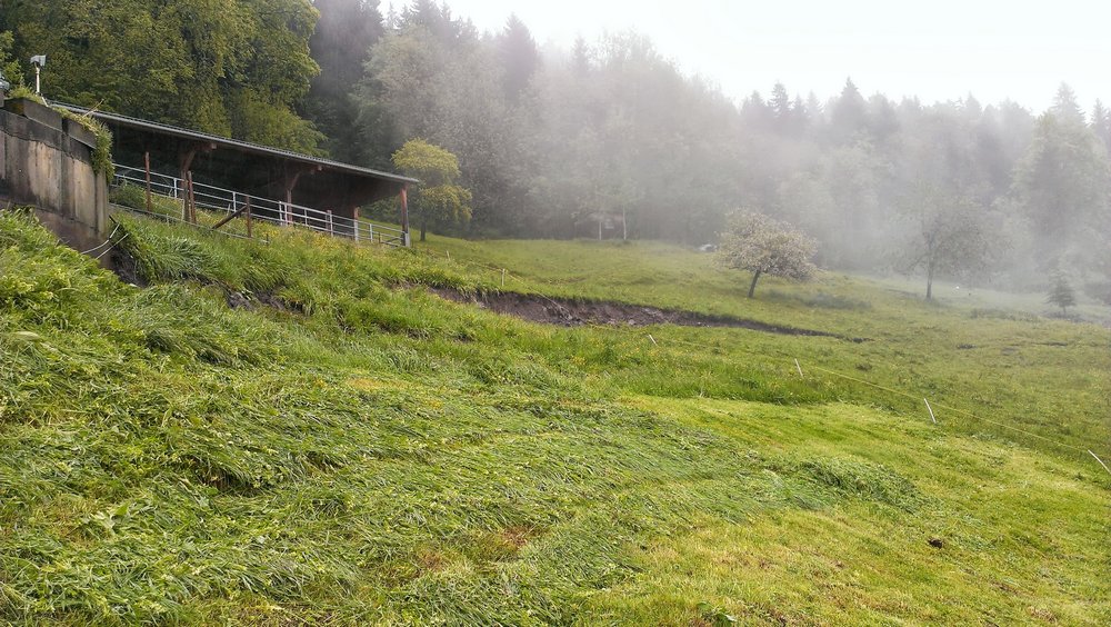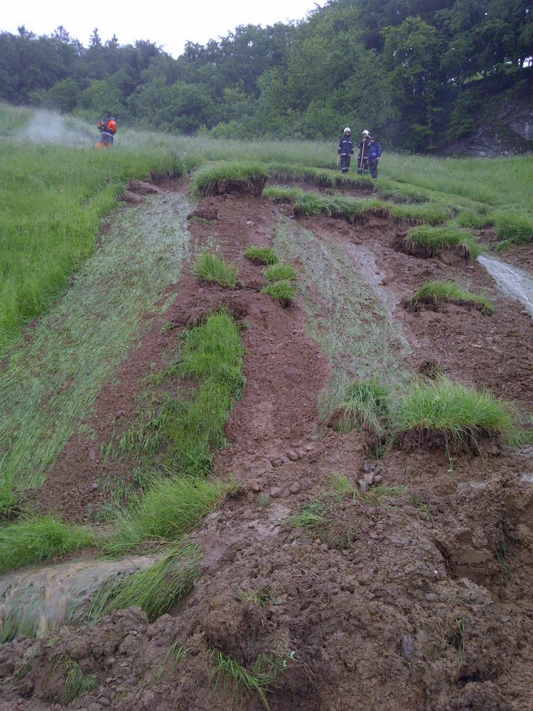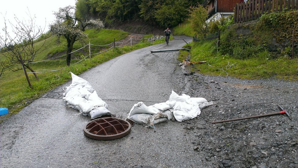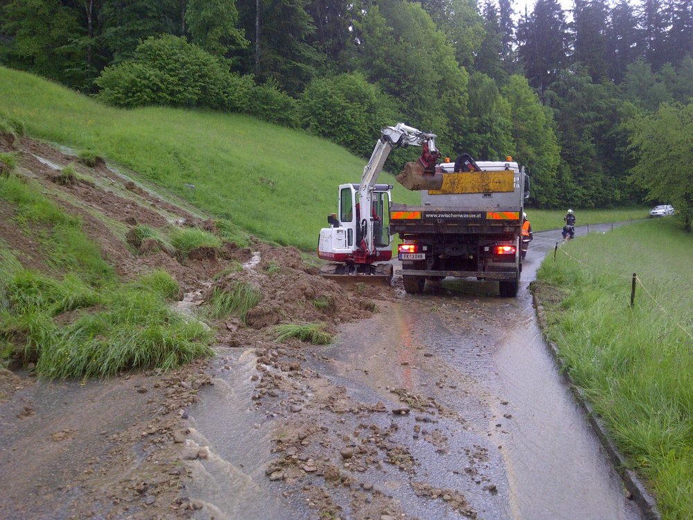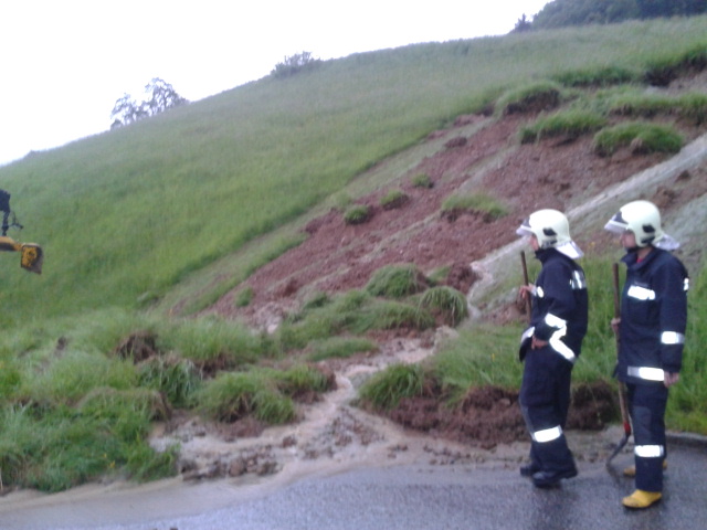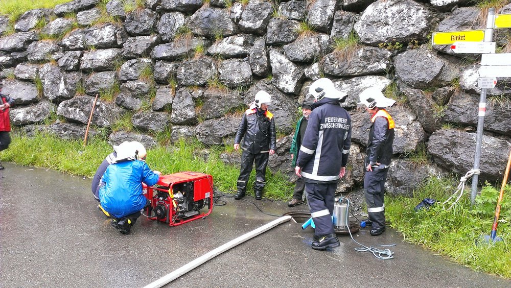 Die extremen Niederschläge zwischen Freitag 31. Mai und Sonntag 2. Juni, führten zu zahlreichen Einsätzen und einem anstrengendem für alle Feuerwehrleute. Innerhalb von 72 Stunden kamen über 200 Liter pro m² vom Himmel. Wasser in Kellern, übergehende Bäche und Hangrutschungen waren die Folge dieser extremen Niederschläge.