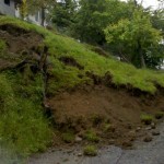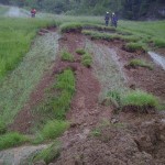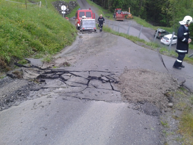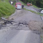 - Durch Hangrutsch beschädigte Straße in Dafins Morsch-Birket