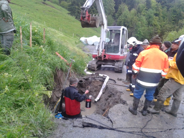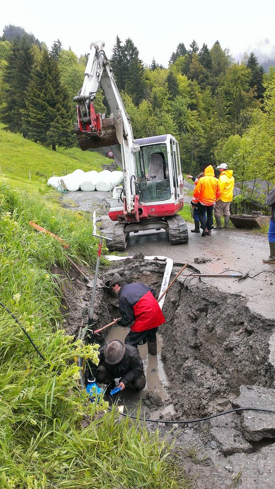 - Reparaturarbeiten an der beschädigten Wasserleitung in Dafins