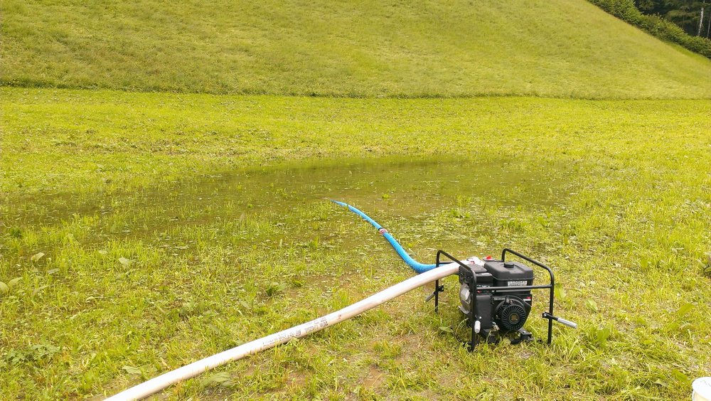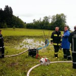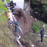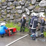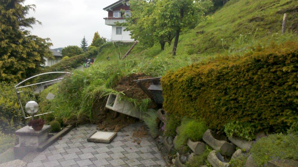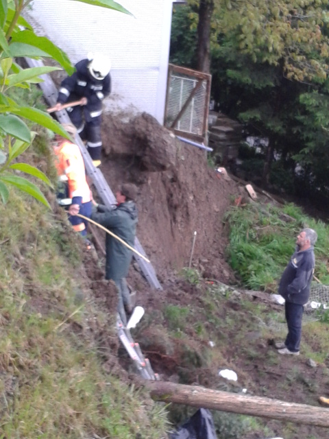 Neben den zahlreichen Hangrutschungen, waren auch wieder einige Keller voller Wasser. So wurden wir zu einem Wohnaus in der Schmalzgasse, in der Bündt und in der Laternser Straße gerufen. Mit Naßsauger und Tauchpumpe konnte die Keller schnell wieder vom Wasser befreit werden! Um eine weitere Hangrutschung zu verhindern, wurde im Bereich Furxstrasse stehendes Wasser aus einer Wiese gepumpt. Damit wurde der darunter liegende Hang entlastet und konnte eine drohende Katastrophe verhindert werden.