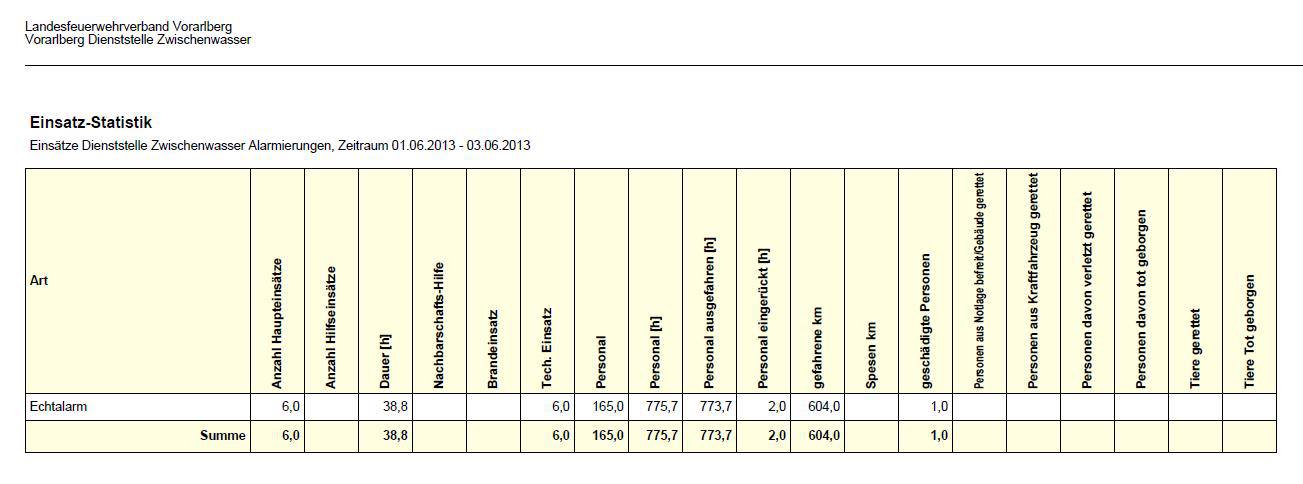 - 165 Mann / Frau der OF Zwischenwasser im Einsatz mit 775 Einsatzstunden